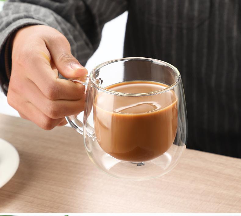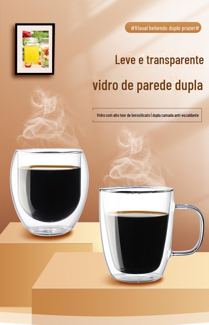 Cross-Border copo especial de vidro resistente ao calor de camada dupla com alça dois pares de xícara de café de leite isolante do calor