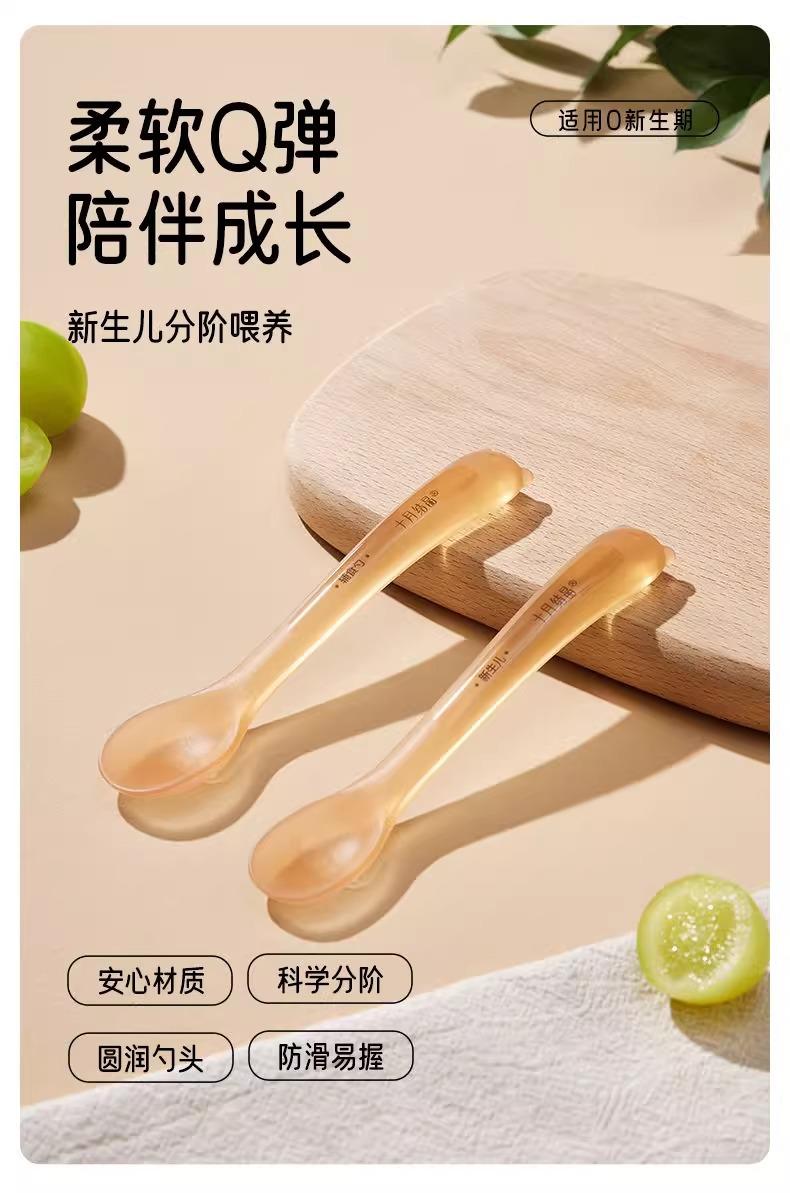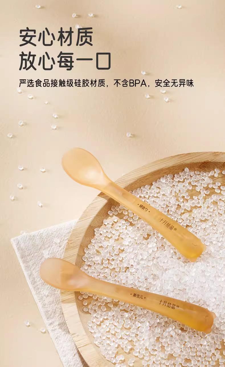Colher de Silicone para Bebê, Colher de Bebê, Colher de Alimentação para Recém-Nascido, Louça Infantil October Crystal, Colher para Alimentos Complementares, Grau Alimentício