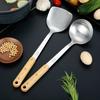 304 aço inoxidável espátula doméstica cabo de madeira utensílios de cozinha engrossado punho de madeira stir-fry pá panela colher cabo de madeira conjunto de espátula