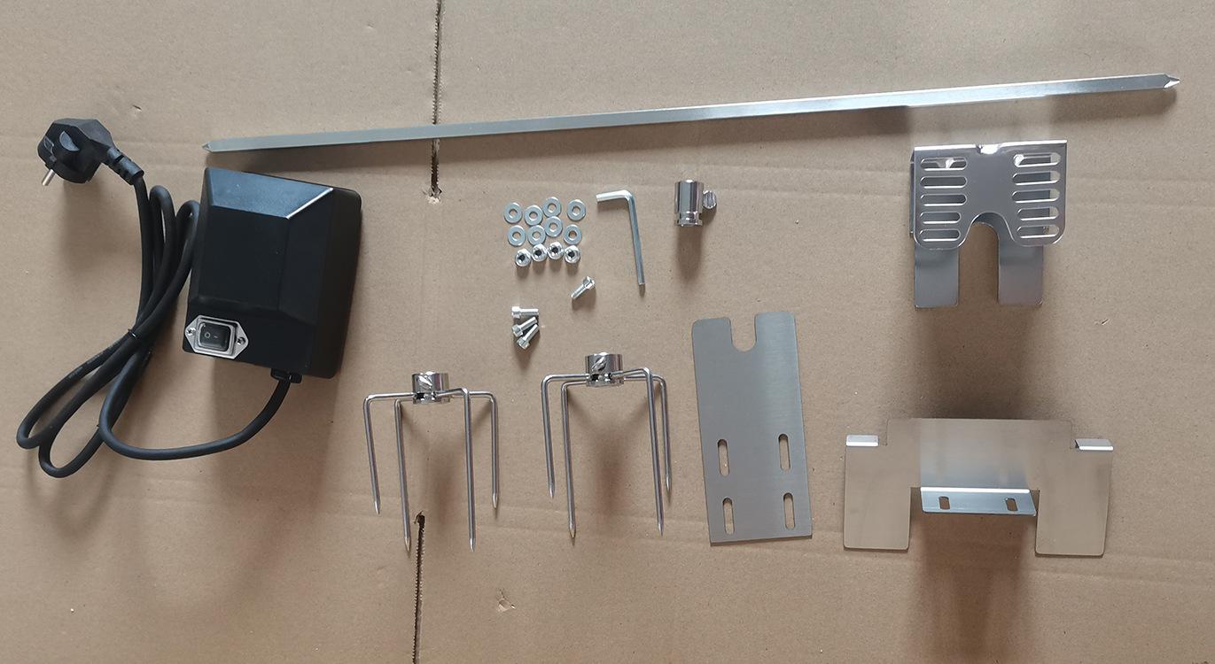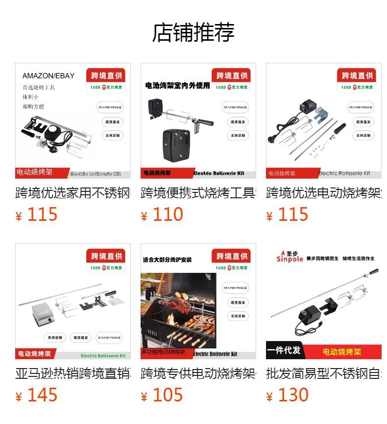 Esta grelha elétrica é uma vendedora quente no mercado, especialmente adequada para todos os tipos de fornos de churrasco. O comprimento não é limitado, e o suporte da haste da grelha pode ser fixado diretamente no forno. O motor passou pela certificação UL, e o garfo da grelha e a haste da grelha passaram pela certificação FDA e LFGB.