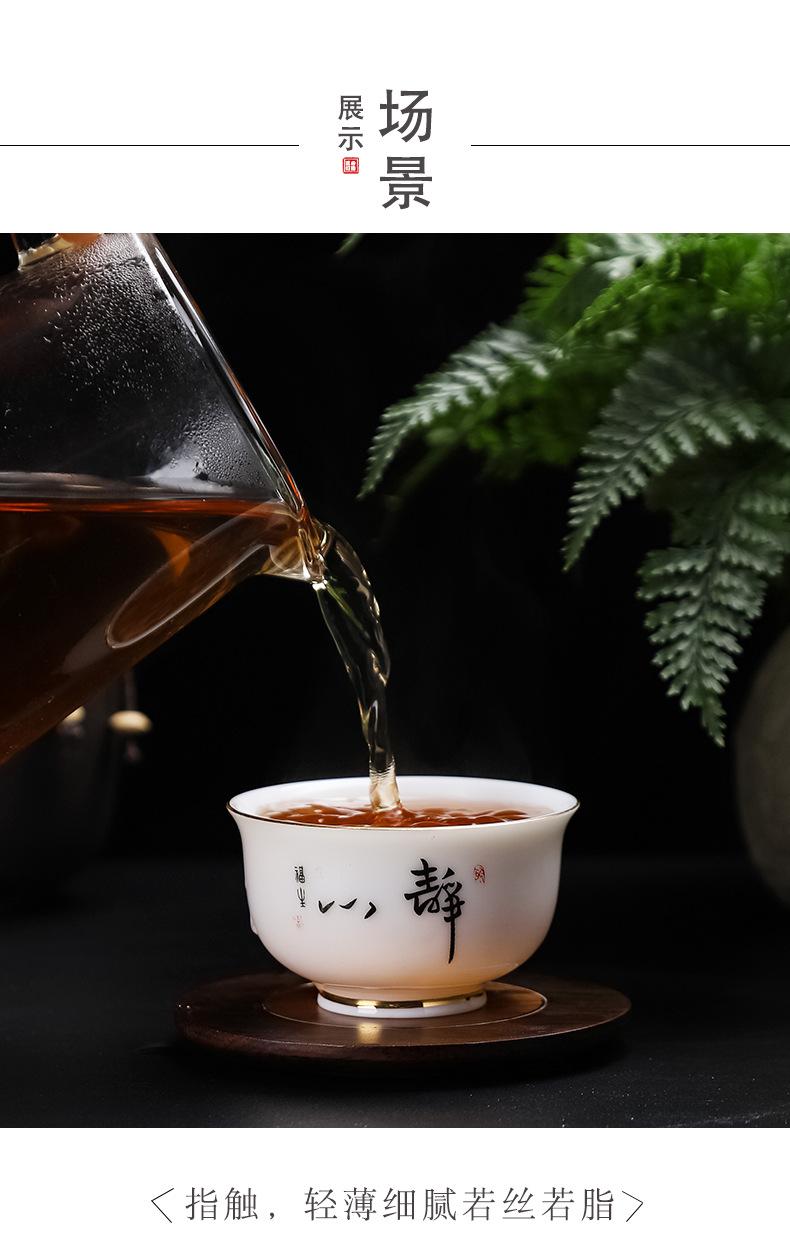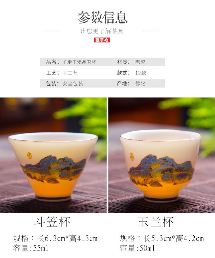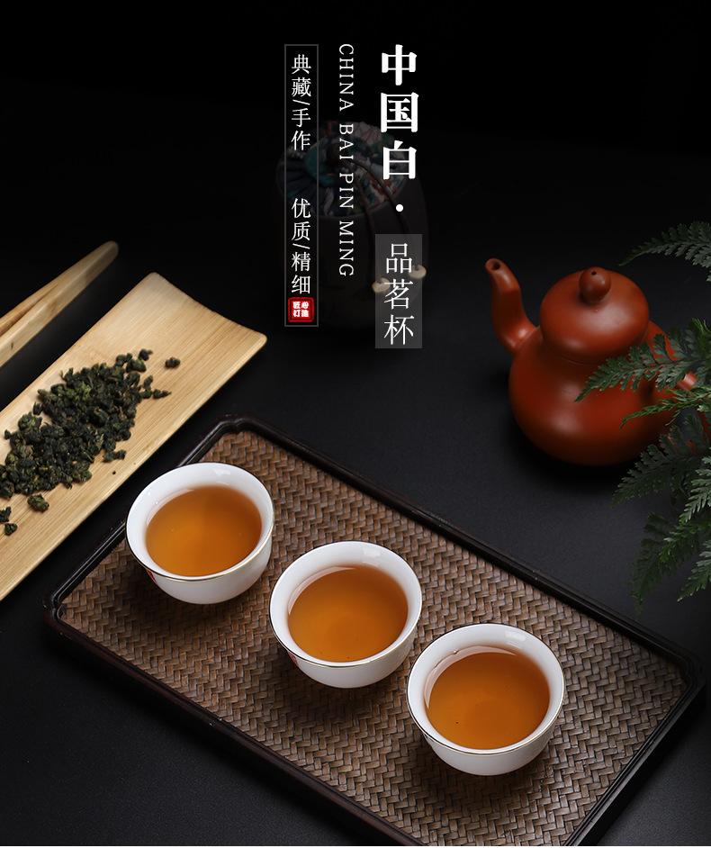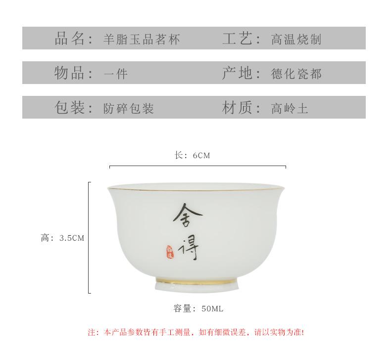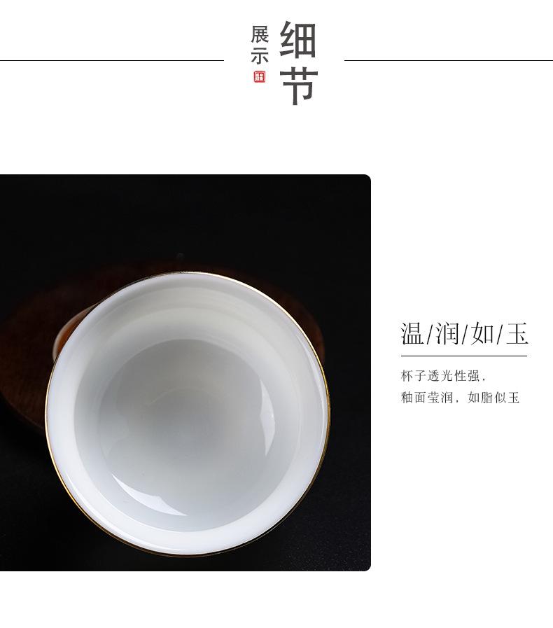 Dehua White Porcelain Suet Jade Tea Cup Single Master Cup Kung Fu Tea Set High-end Tasting Cup Gold Small Tea Cup Ceramic