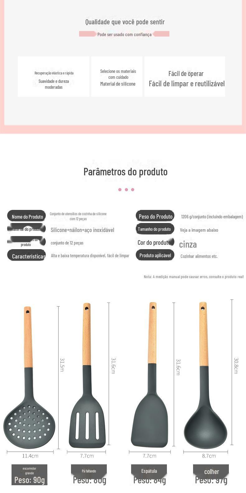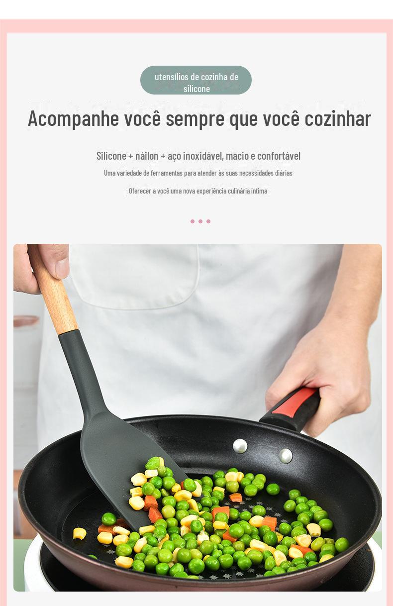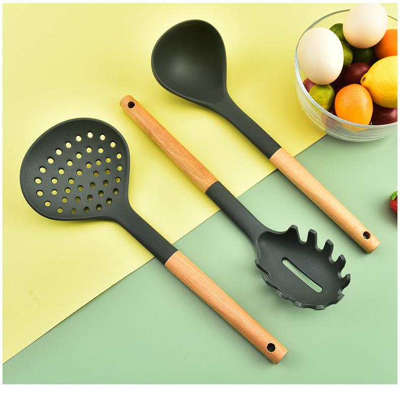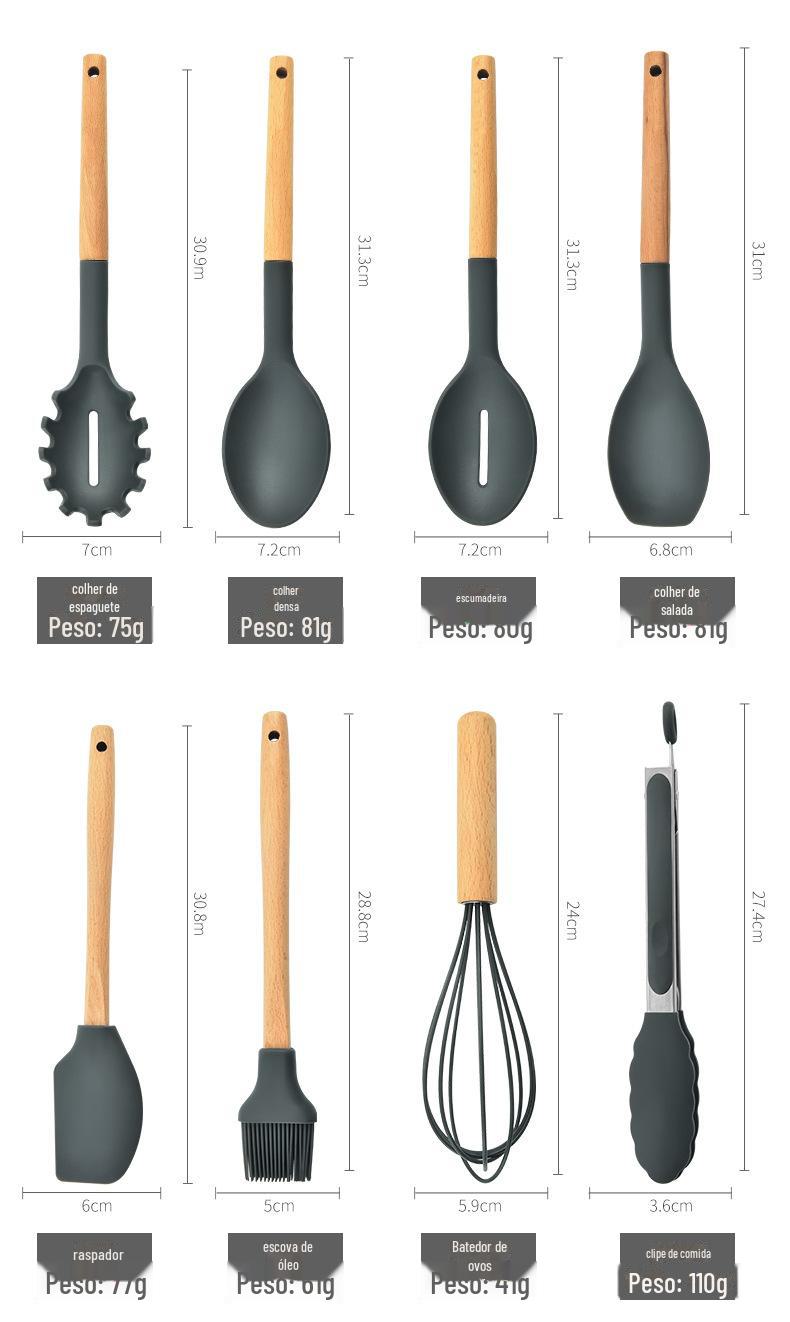 Puxador de madeira espátula de silicone colher de cozinha utensílios de cozinha conjunto de 11 peças barril de armazenamento de silicone utensílios de cozinha conjunto de 12 peças