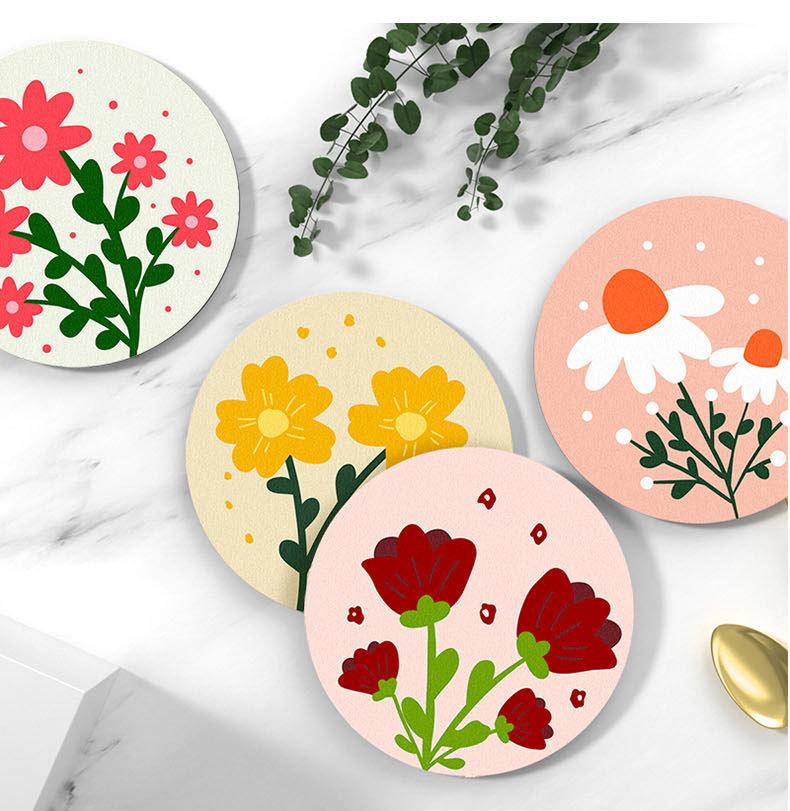 Em estoque por atacado redondo Café MAT Bule Chá Copa de isolamento térmico montanha-russa resistente ao calor diatomácea criativa montanha-russa de lama