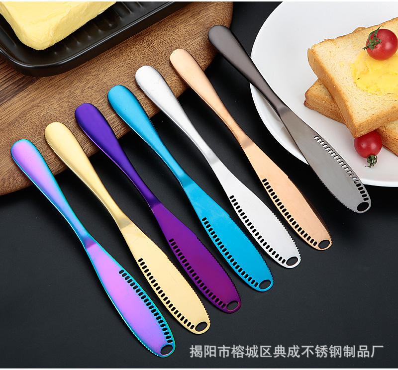 Cross border faca de manteiga de aço inoxidável com furo faca de manteiga bolo de queijo faca de creme de geleia faca de óleo de queijo faca de decoração