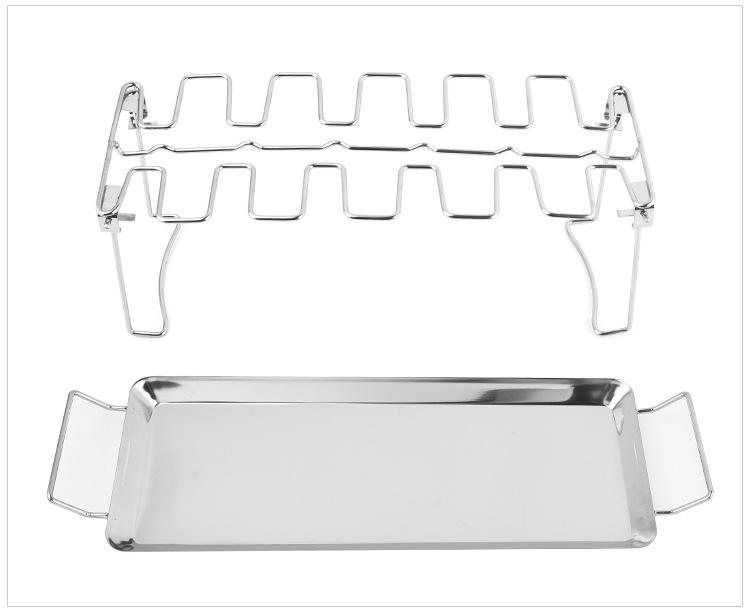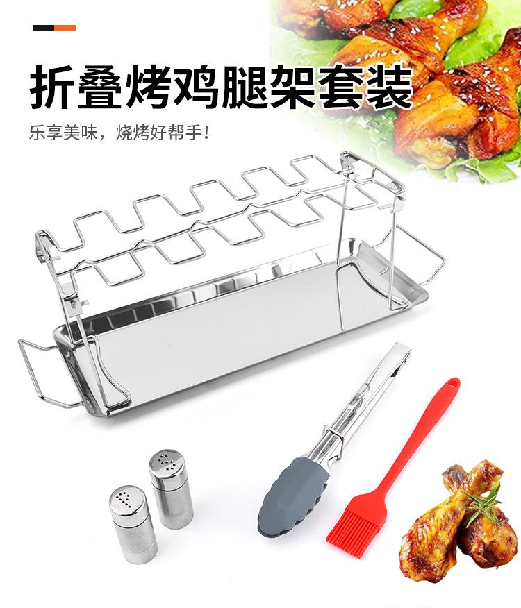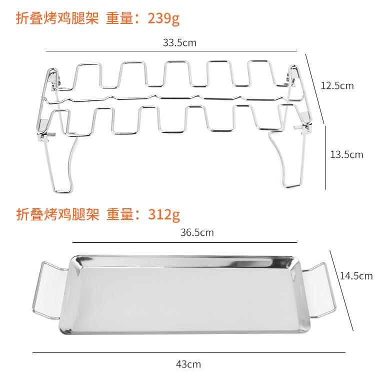 Aço inoxidável dobrável grelhado frango leg rack set churrasqueira churrasqueira camping ao ar livre churrasqueira portátil grill com bandeja