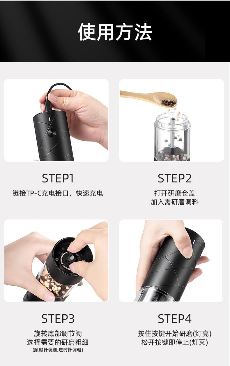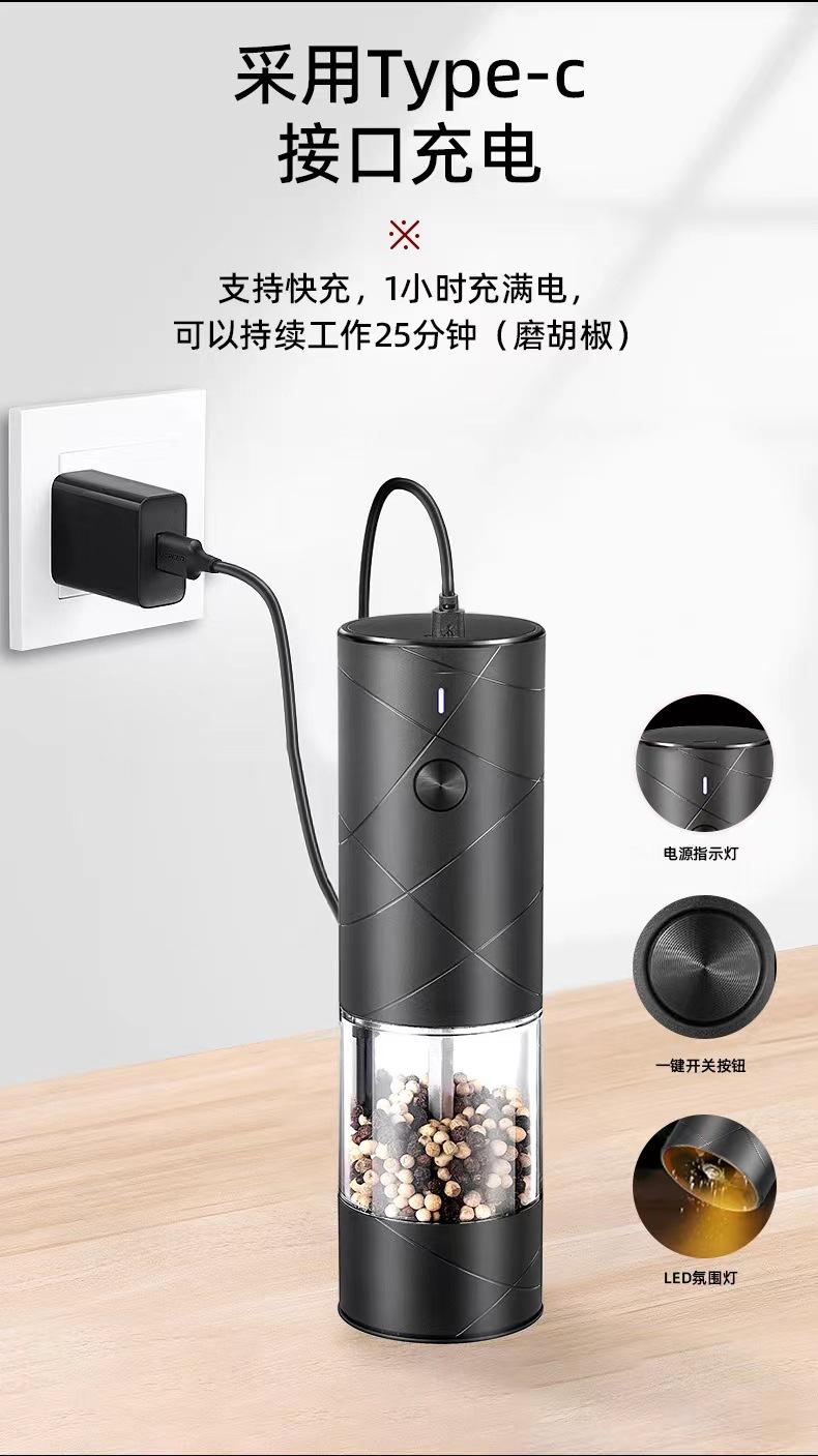 Moedor de Pimenta Elétrico de Cozinha Recarregável por USB Moedor de Temperos Sal Rosa Pimenta Preta Moedor de Especiarias