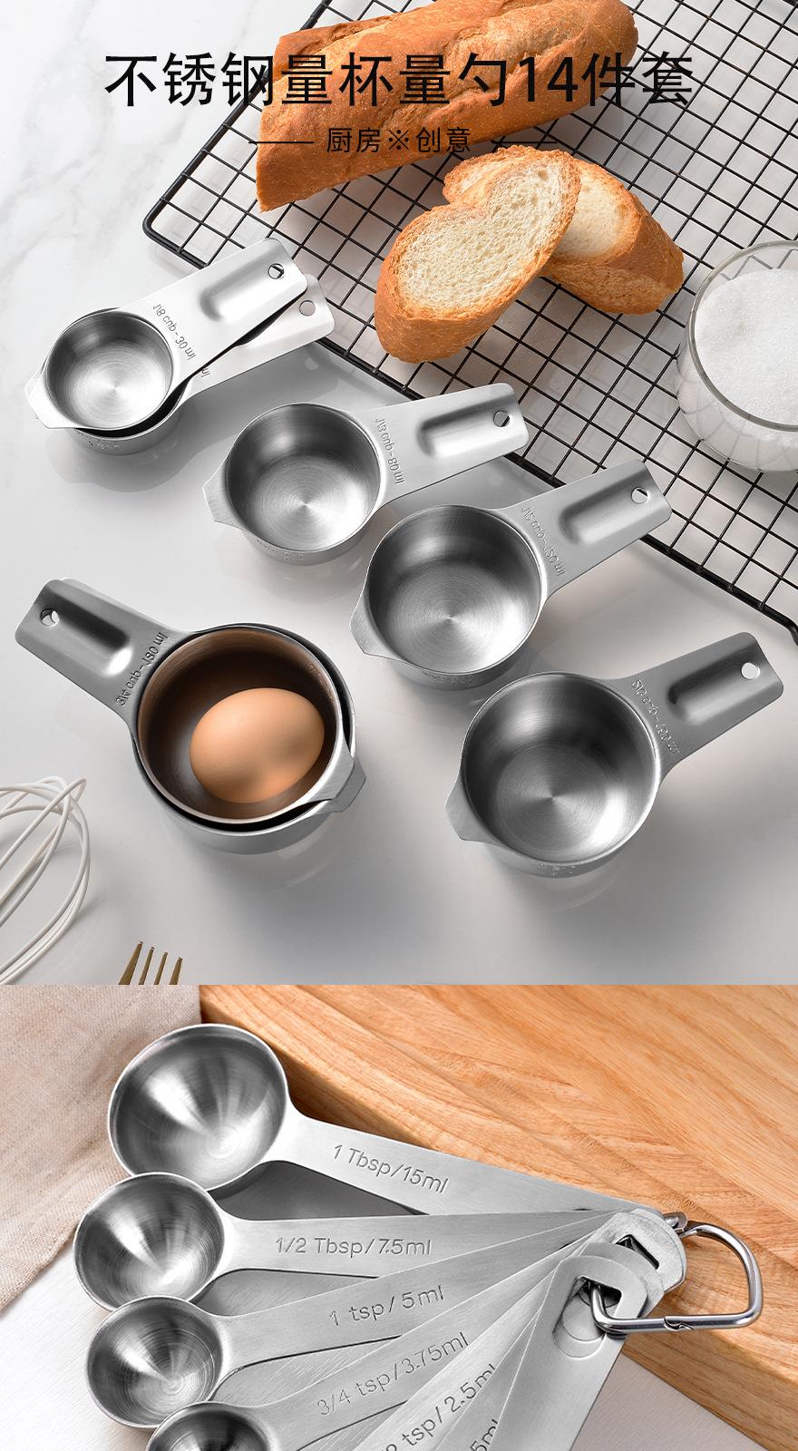 Copo de medição de aço inoxidável da Amazônia Colher de medição 14 peças terno ferramentas de cozimento com balança Conjunto de copos de medição