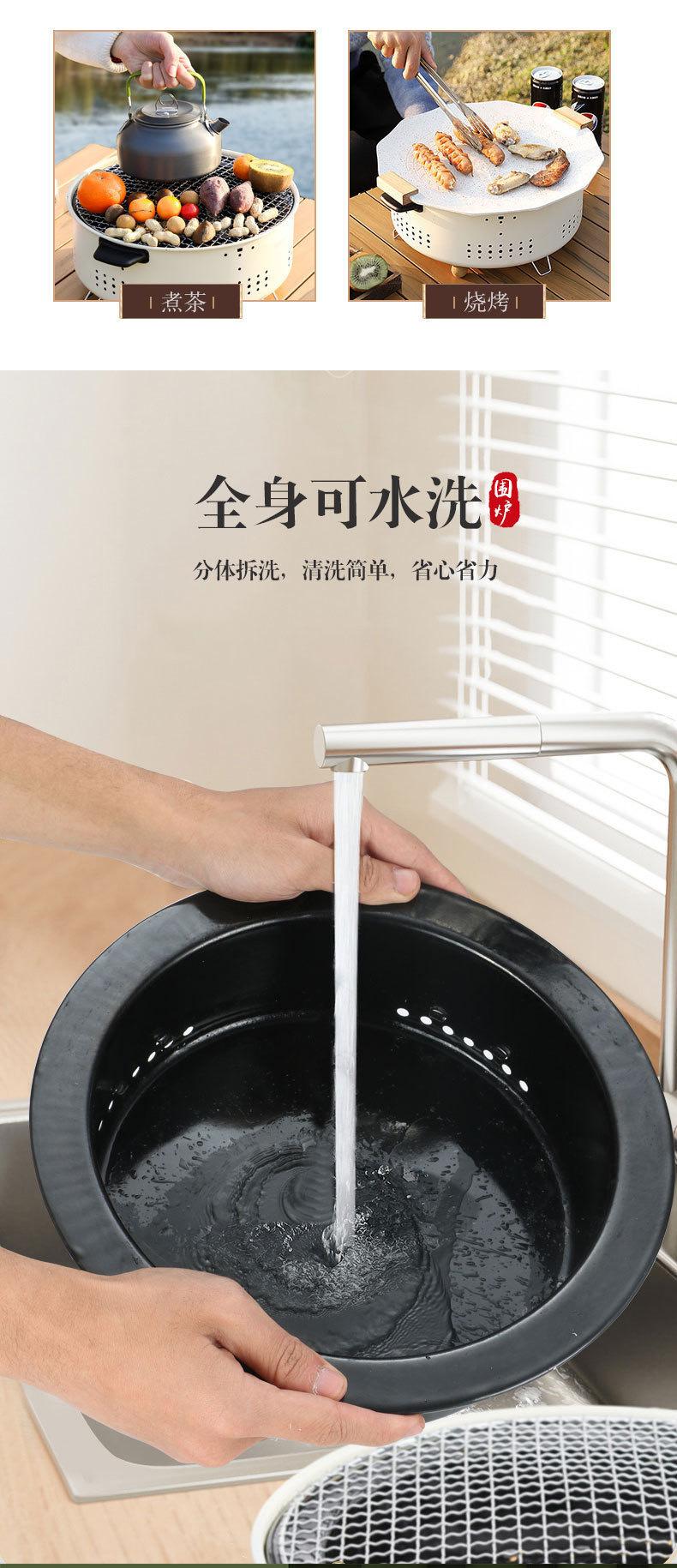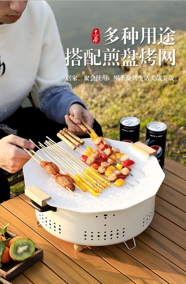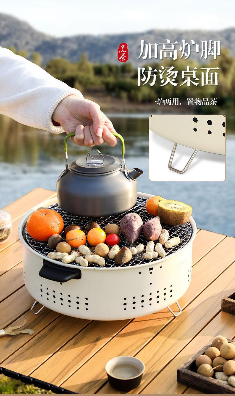 Forno de carbono multifuncional para cozinhar chá, churrasqueira portátil interna, terno redondo camping ao ar livre