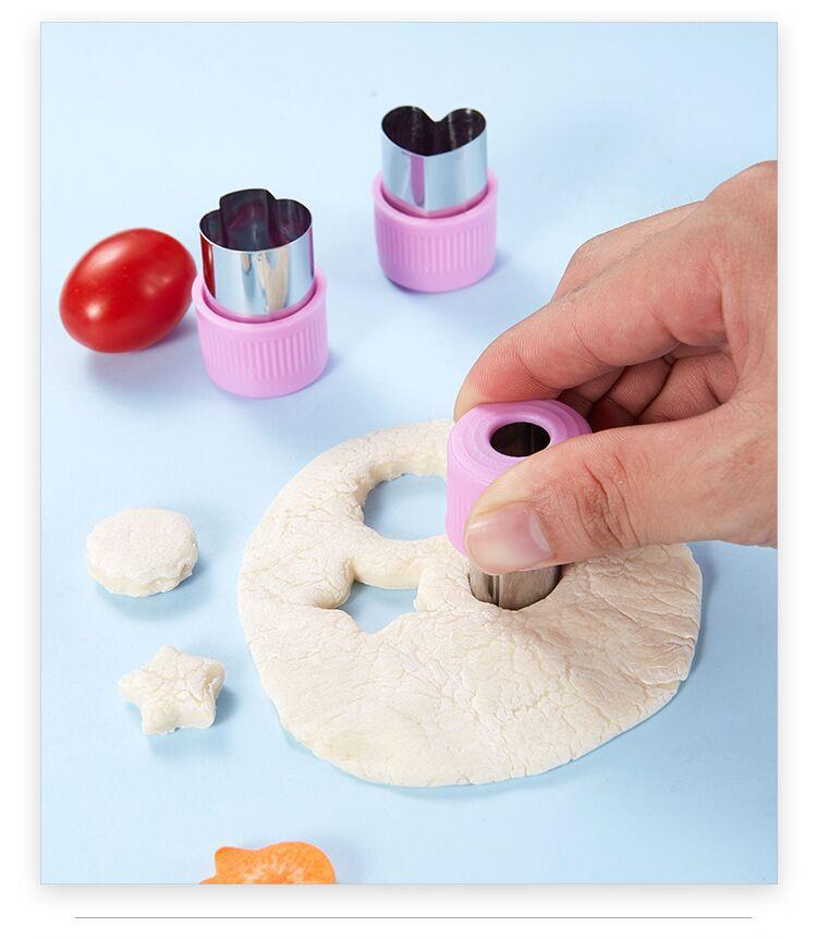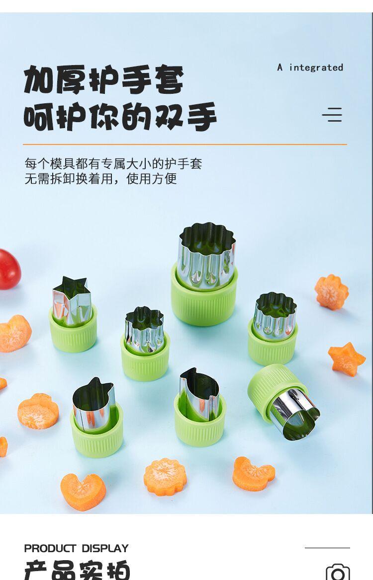 Cortador de flores com rosto de borboleta para bebê com proteção de mão, desenho animado, formato de vegetais e frutas, faca em relevo, molde para macarrão de vegetais e frutas