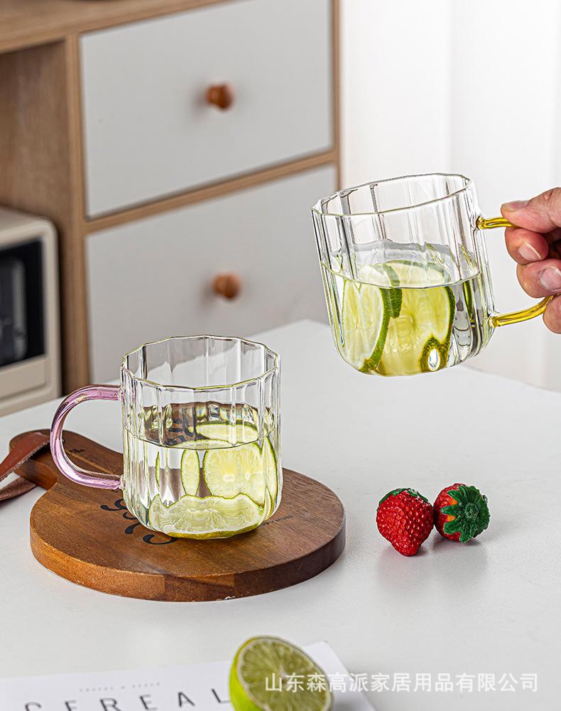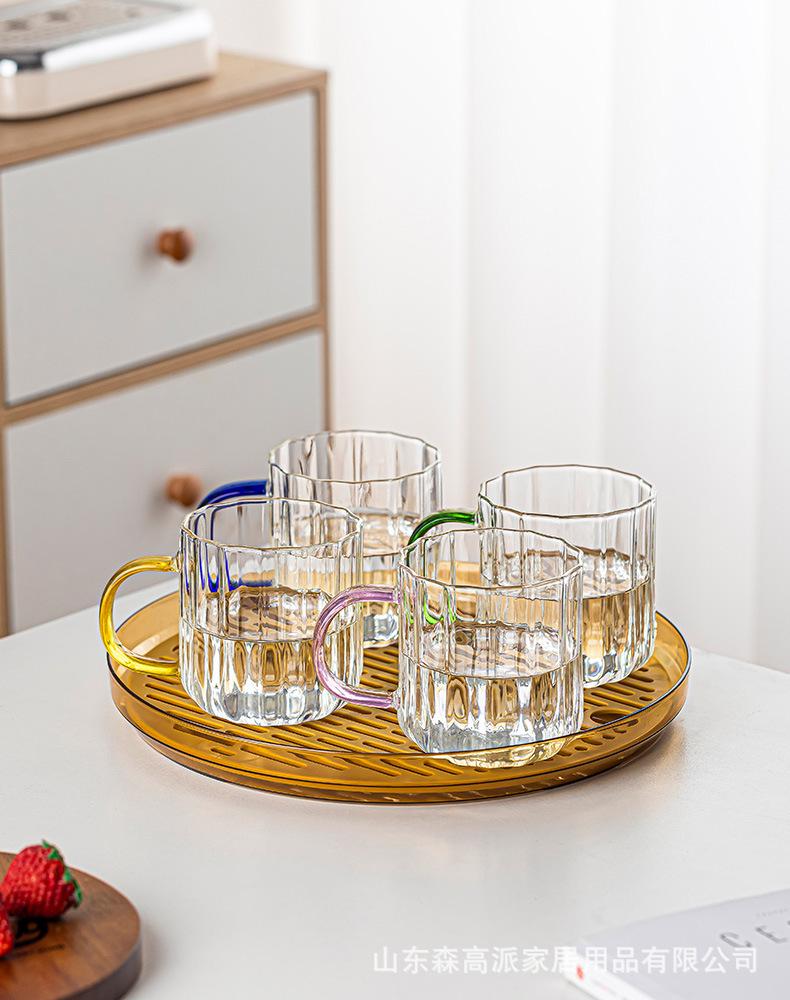 Copo de vidro doméstico resistente ao calor copo de água sala de estar hospitalidade chá copo de leite de alto valor de cor copo de água potável terno de água