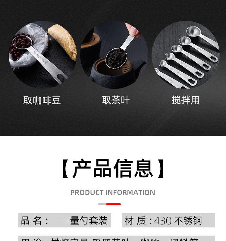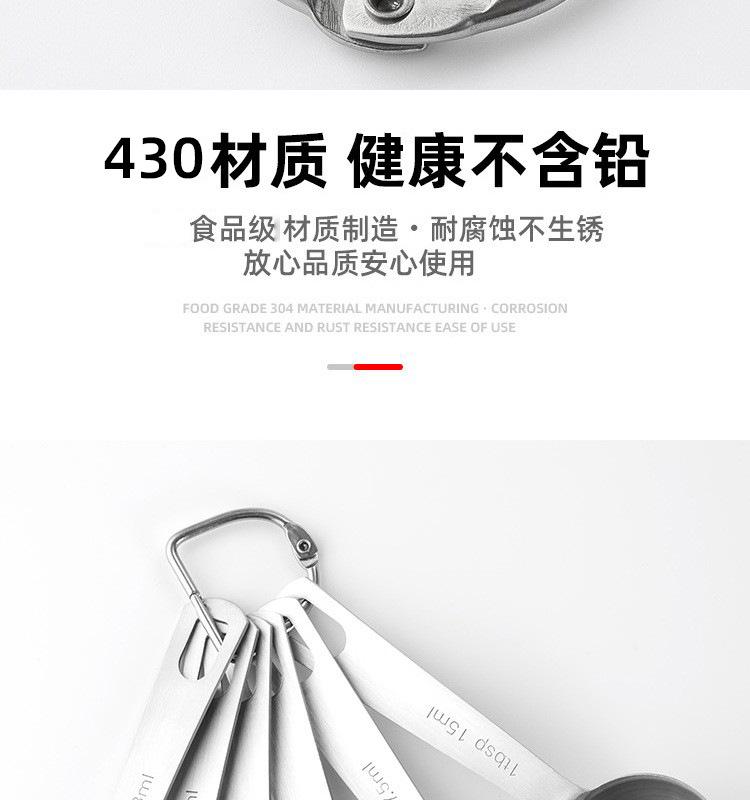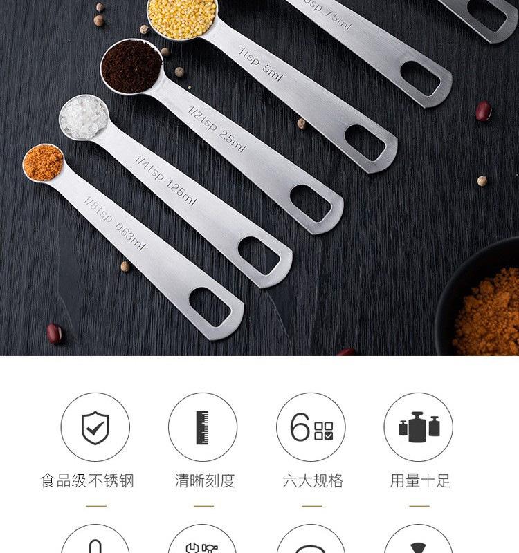 Colher de medição de aço inoxidável colher de medição redonda conjunto de 6 peças Conjunto de 7 peças Balança de cozimento Colher de tempero de medição Colher de cozimento