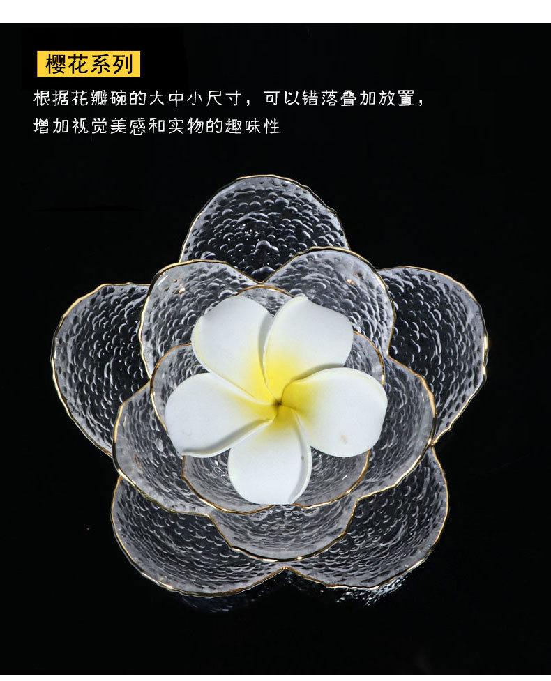 Tigela de salada de vidro estilo japonês tigela de frutas de borda dourada tigela de sobremesa única fofa casa prato pequeno martelo padrão de pétala de cereja Tigela