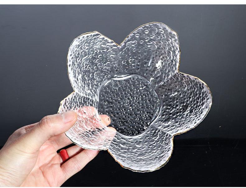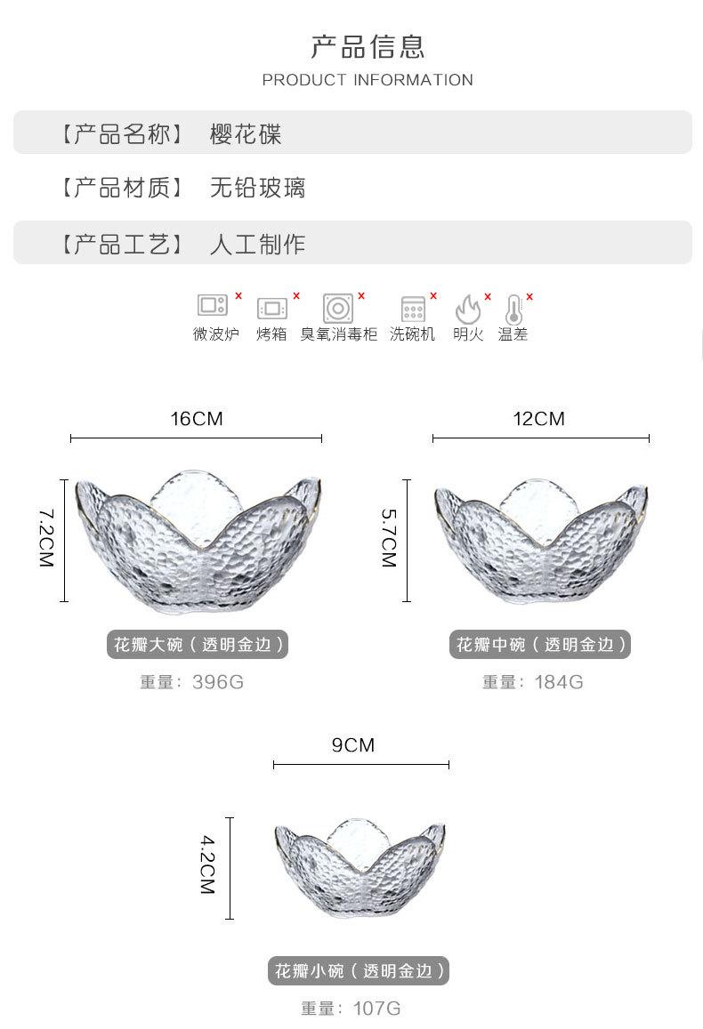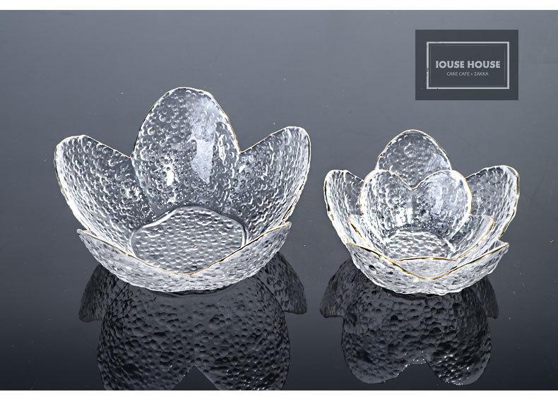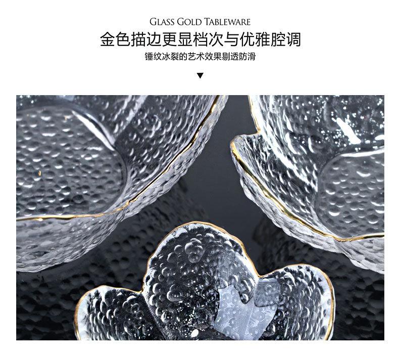 Compre Tigela de salada de vidro estilo japonês tigela de frutas de borda dourada tigela de sobremesa única fofa casa prato pequeno martelo padrão de pétala de cereja Tigela no atacado no Joom.pro