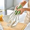 Conjunto de sete peças de espátula de silicone para utensílios de cozinha, cabo de silicone, espátula de silicone com isolamento de duas cores, branco e verde, conjunto de utensílios de cozinha