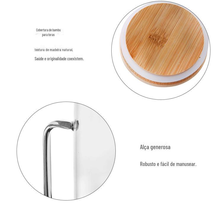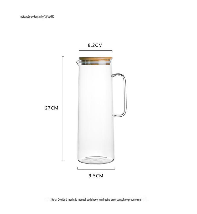 Jarra de Água de Corpo Reto Espessado, Jarra de Água Fria de Grande Capacidade, Vidro Resistente ao Calor, Tampa de Bambu Transparente, Conjunto de Jarra de Água Fria, Bule de Chá de Alto Borossilicato