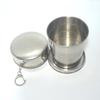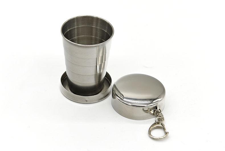 Modo de usar: levante o copo dobrável com força e gire-o horizontalmente quando atingir o ponto mais alto. Devido à coesão entre o aço inoxidável, somente girando-o com força é que o formato do copo pode ser fixado, para que possa ser utilizado para encher com água ou outros líquidos.