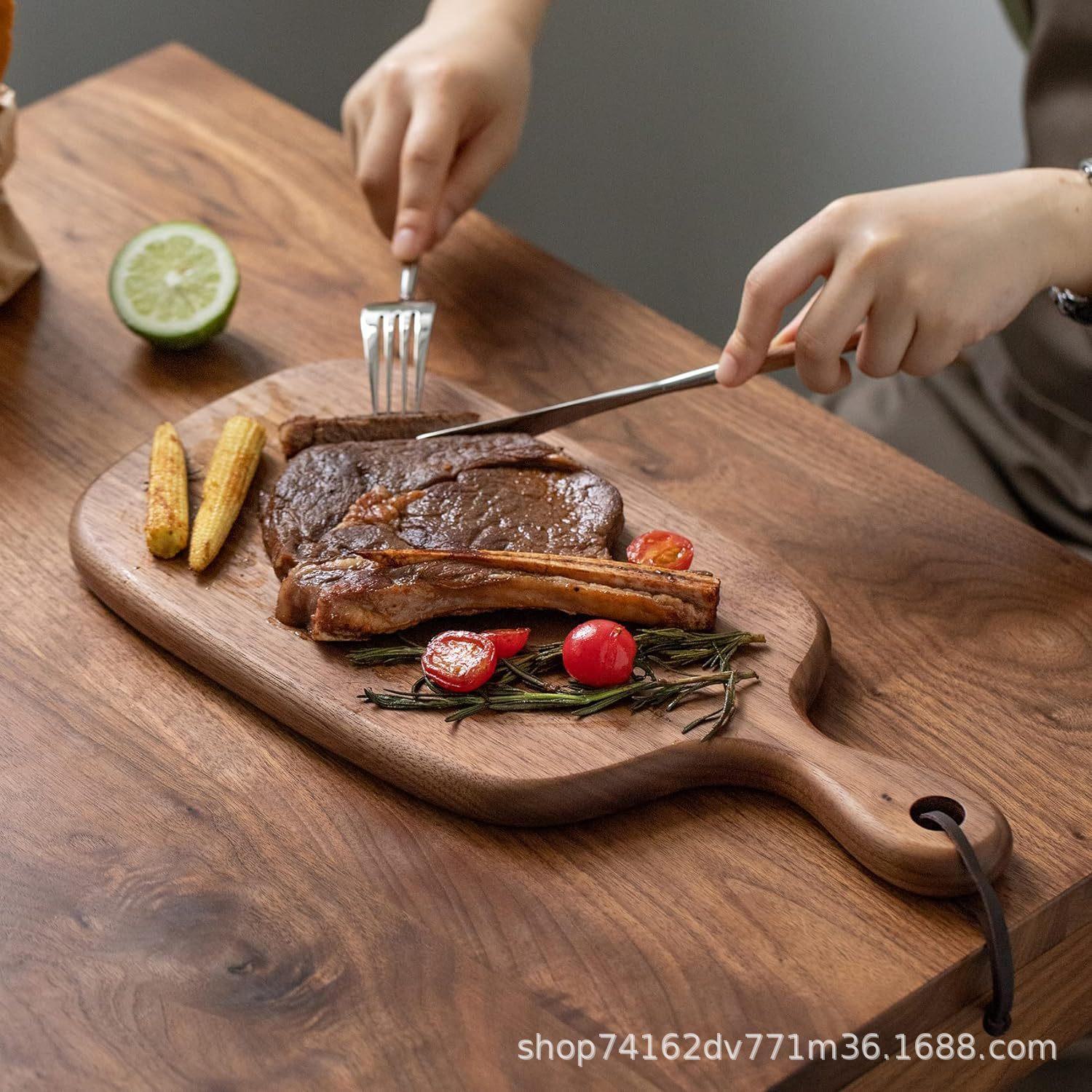 Tábua de corte de madeira de nogueira preta, tábua de pão, bandeja para bife, tábua de corte de madeira, prato de pizza, prato de bolo, bandeja para assar comida ocidental