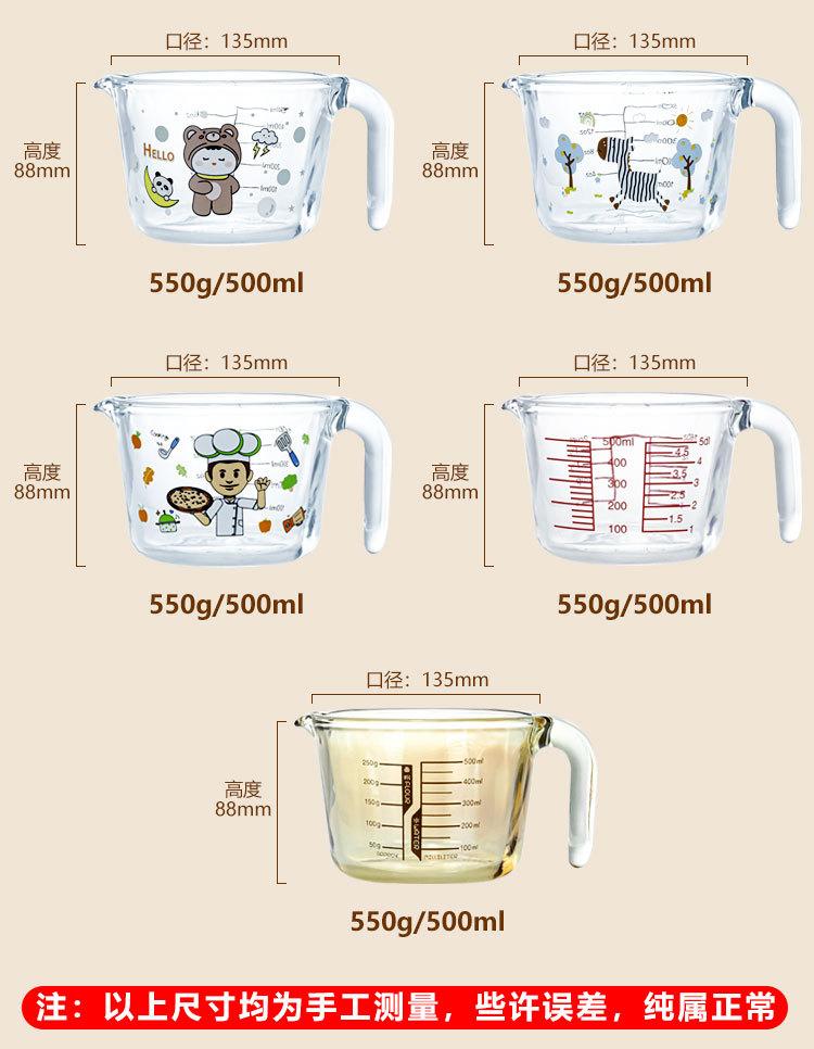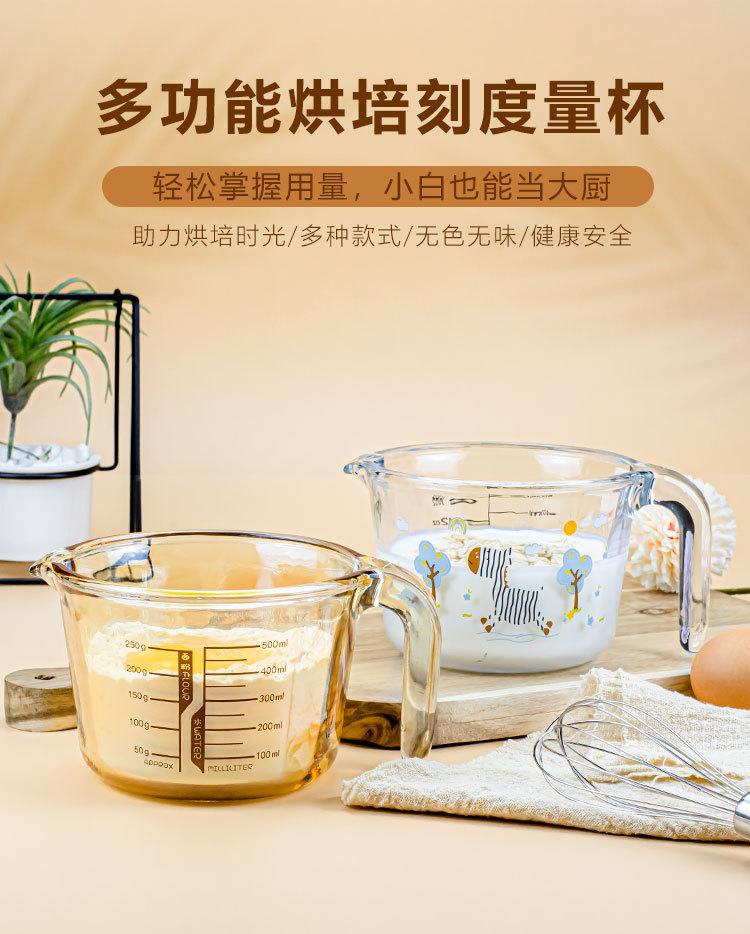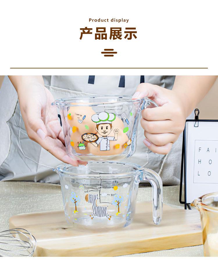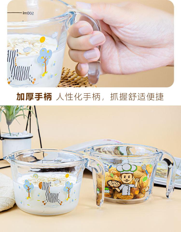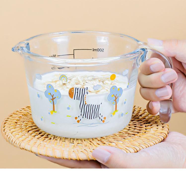 Com alça de vidro copo de medição espessado copo de medição de grande capacidade com escala copo de leite resistente a alta temperatura utensílios de cozinha de cozinha