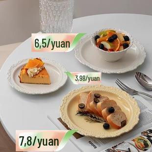 Ins conjunto de talheres de cerâmica em relevo, estilo retrô, prato de jantar ocidental, estilo palácio, cor creme, prato de cerâmica