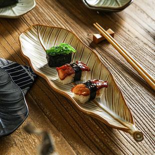 Placa longa de cerâmica criativa com folhas retrô, prato longo para sushi, comida ocidental, prato de pastelaria, frutas, café da manhã, prato de sobremesa requintado