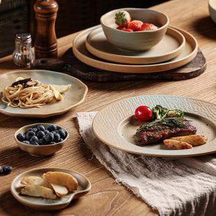 Nordic ins talheres de hotel de alta qualidade, tigelas e pratos de cerâmica, combinação de vinho tinto, restaurante, casa, placas de exibição em relevo