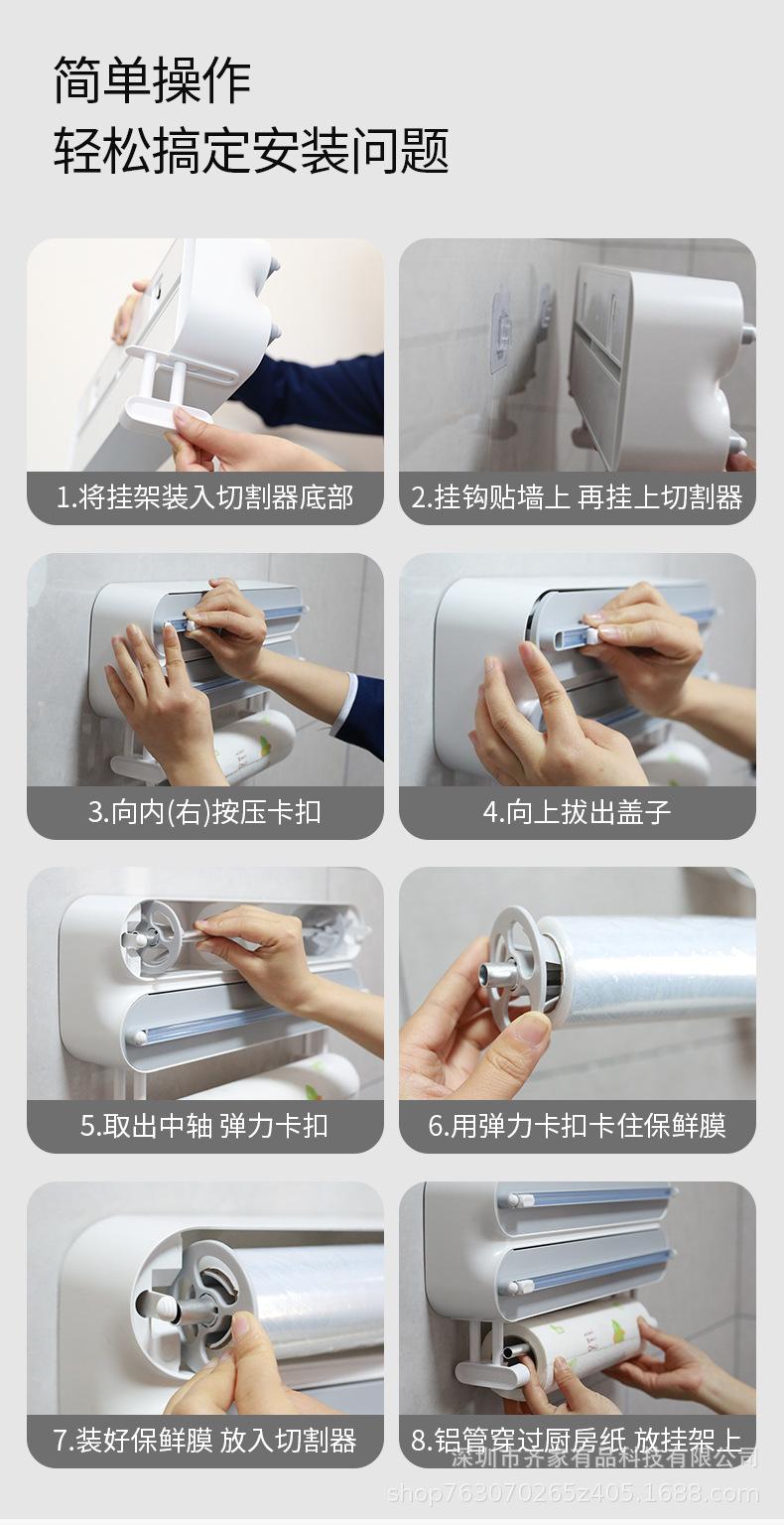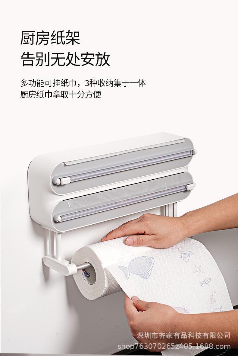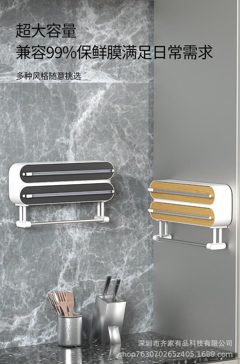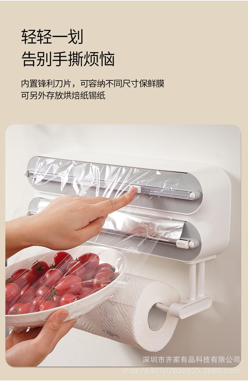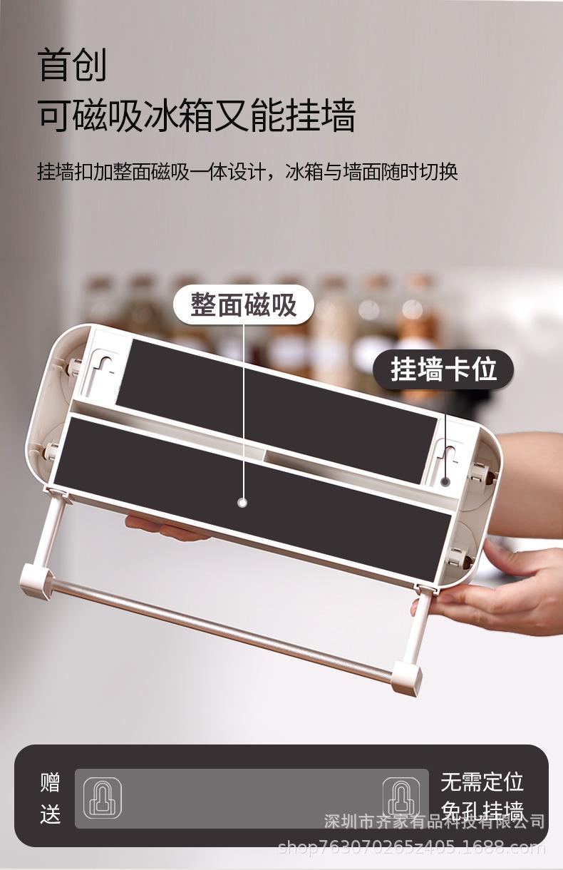 Cortador de filme plástico multifuncional papel de cozinha rack de pano preguiçoso geladeira magnética não perfurada parede pendurada faca deslizante bidirecional