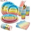 Em estoque por atacado Amazon douramento aniversário placa de papel louça terno papel copo papel toalha faca garfo colher placa de papel descartável