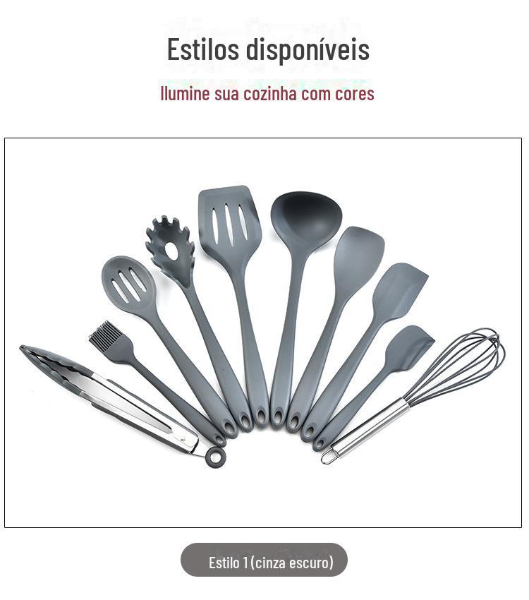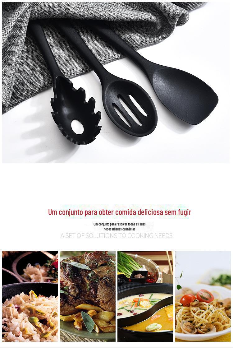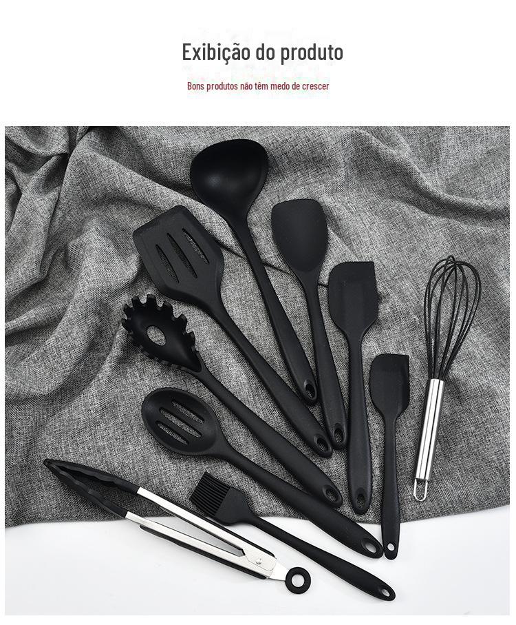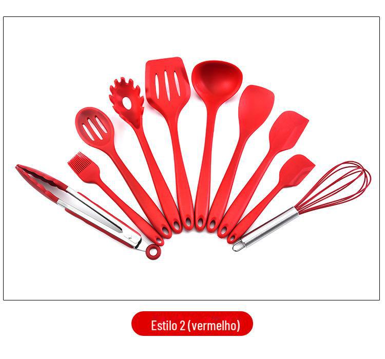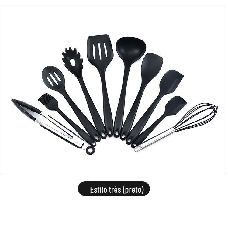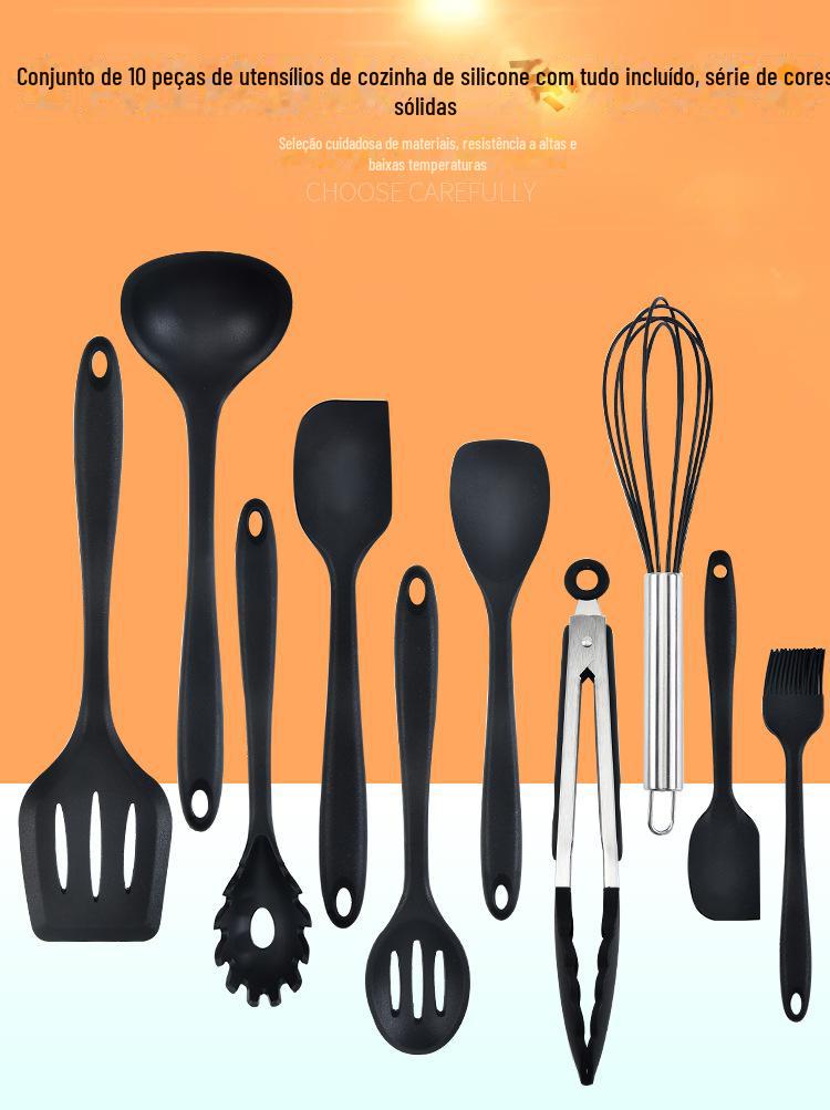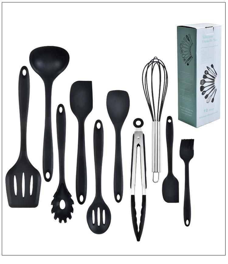Conjunto de utensílios de cozinha de silicone completo de 10 peças suprimentos de cozinha espátula de cozinha e colher integradas conjunto de utensílios de cozinha de silicone