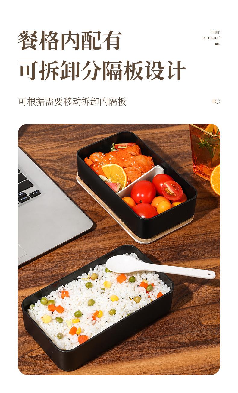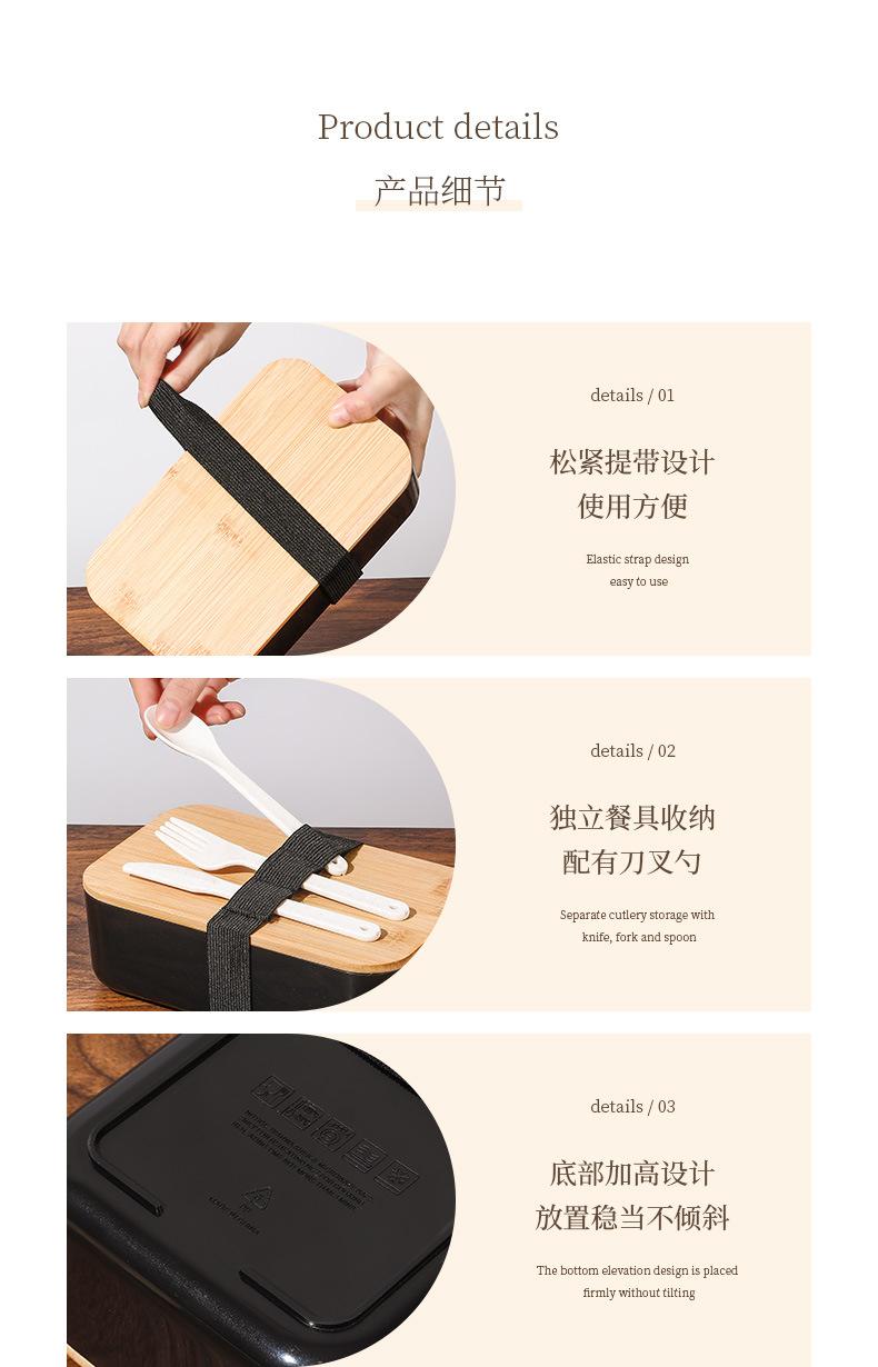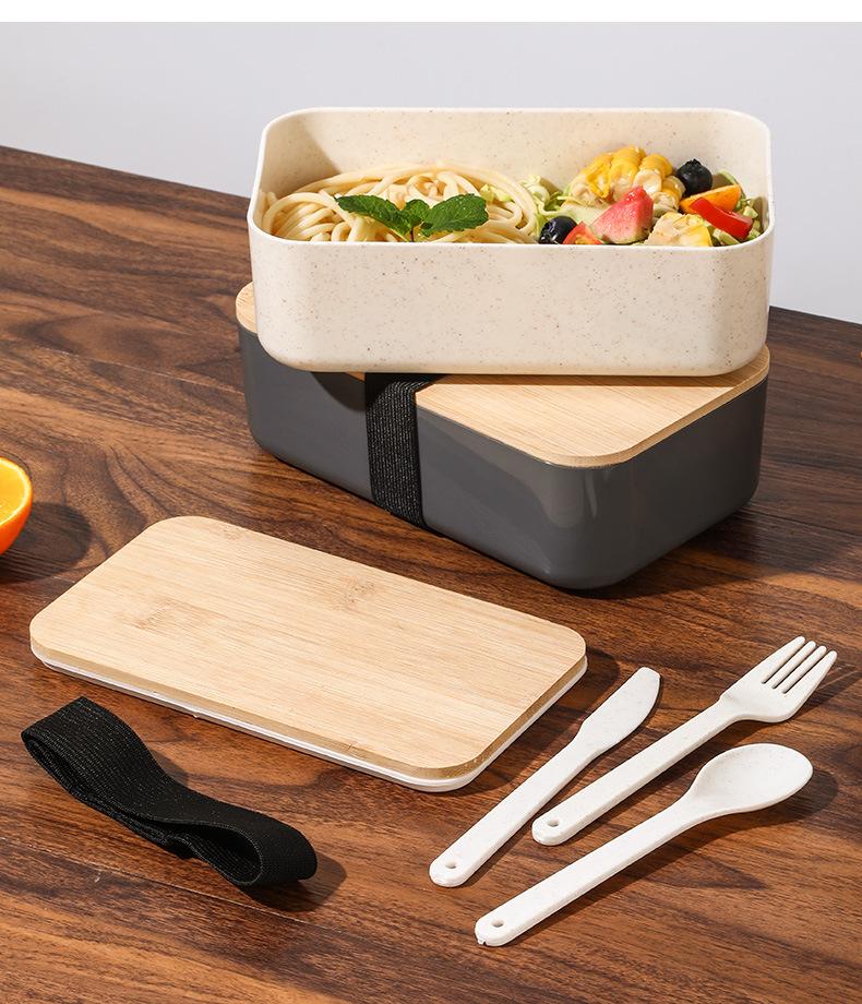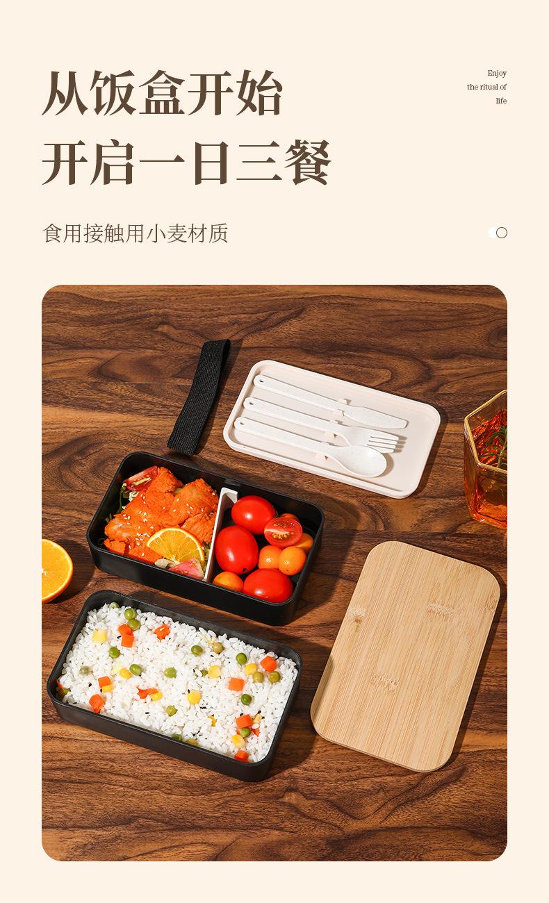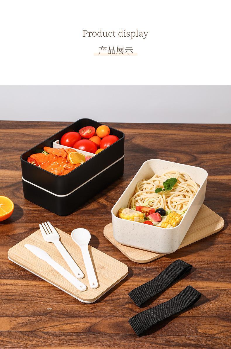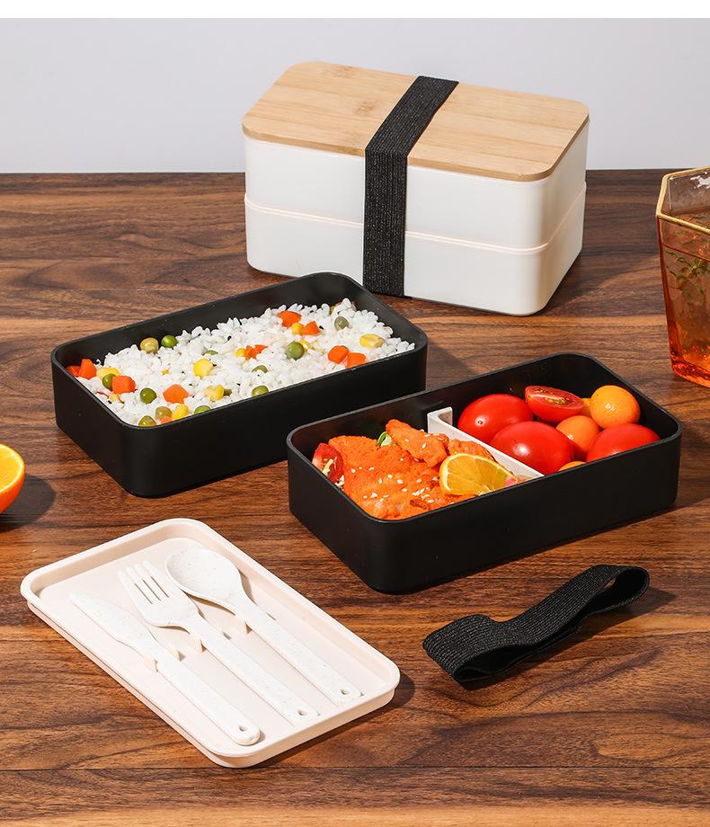 Bamboo cover + double-layer bento box (black) gift knife, fork and spoon
