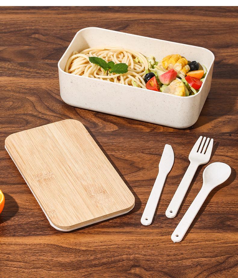 Bamboo cover + single-layer bento box (Nordic rice) gift knife, fork and spoon, Bamboo cover + single-layer be...