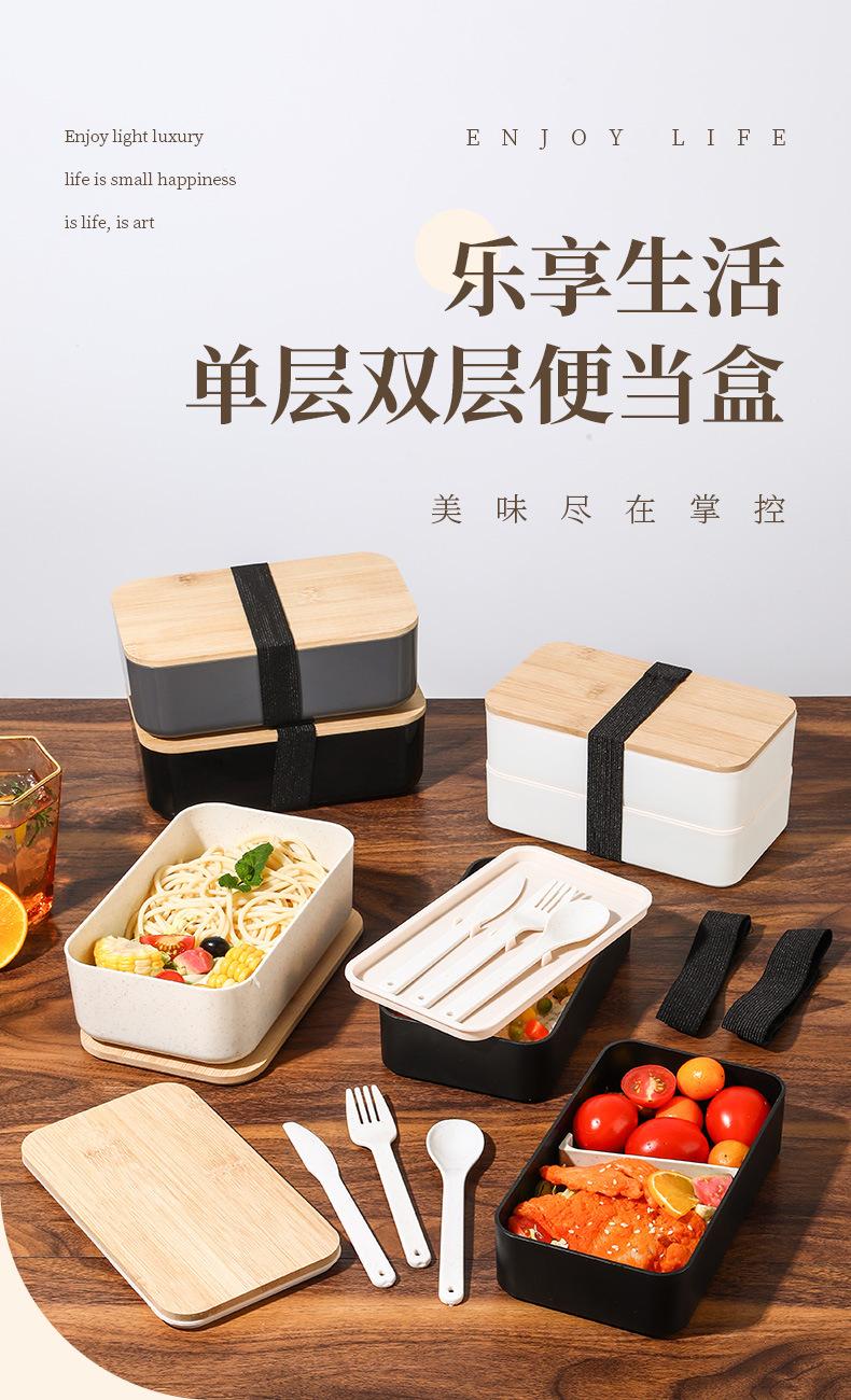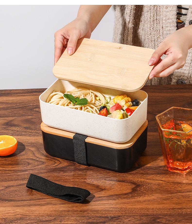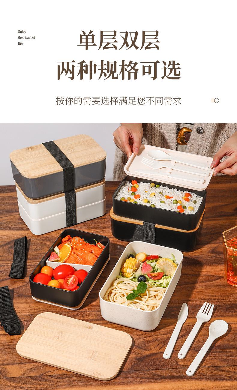 Nova lancheira de camada dupla estilo japonês compartimento de tampa de madeira lancheira de plástico lancheira estudante sushi lancheira lancheira