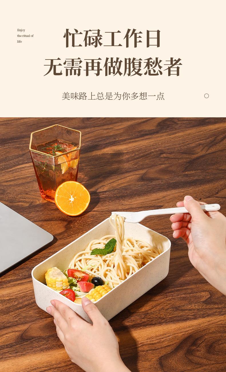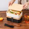 Bamboo cover + double-layer bento box (white) gift knife, fork and spoon