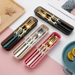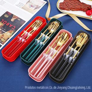 | 304 coreano conjunto de talheres portátil de três peças de aço inoxidável estudante garfo colher pauzinhos caixa de armazenamento conjunto de talheres |