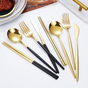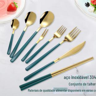 | Conjunto de talheres de aço inoxidável 304, faca coreana e garfo, internet, celebridade, hotel ocidental, faca de bife, colher de sobremesa, cabo longo |