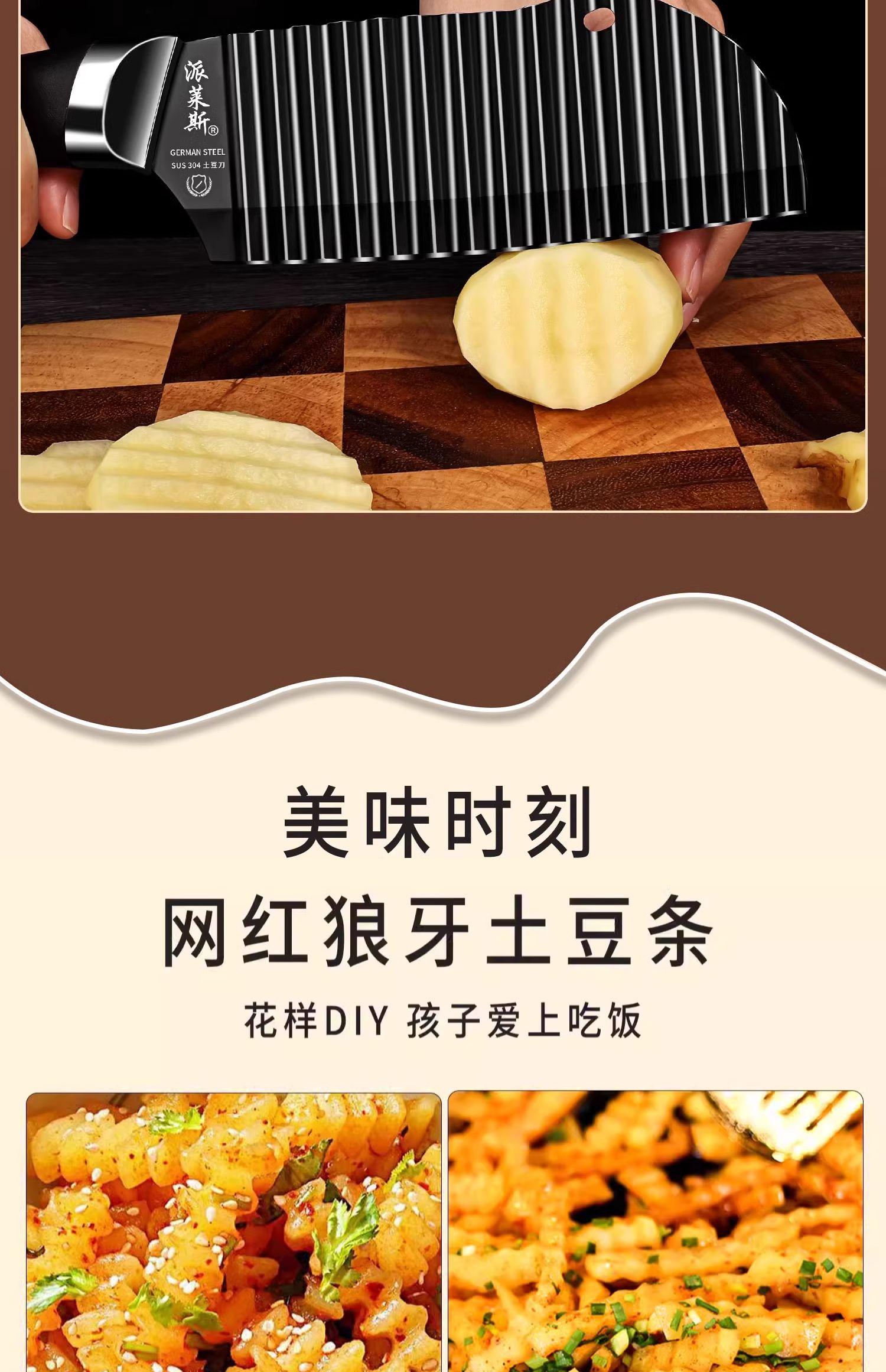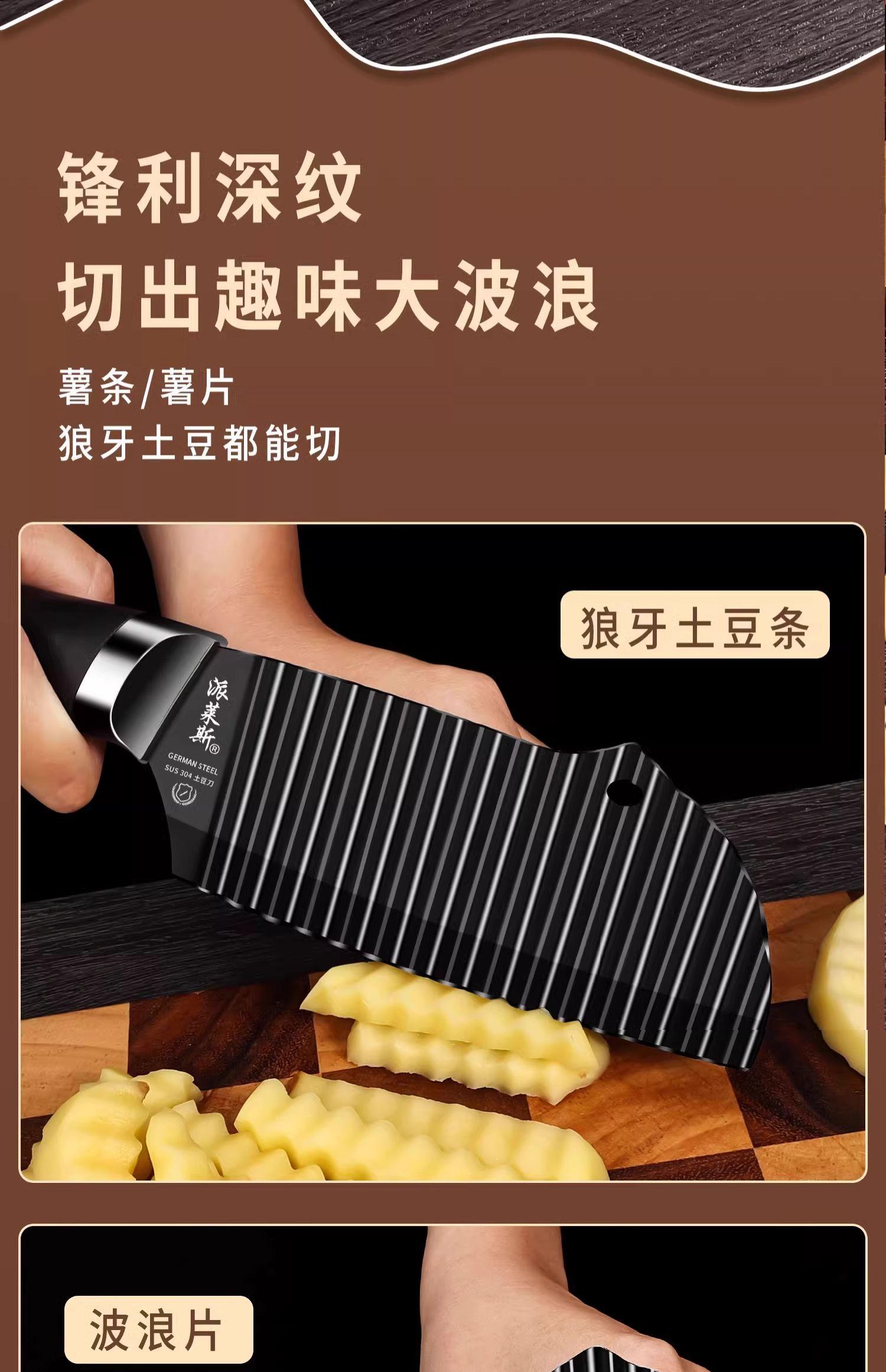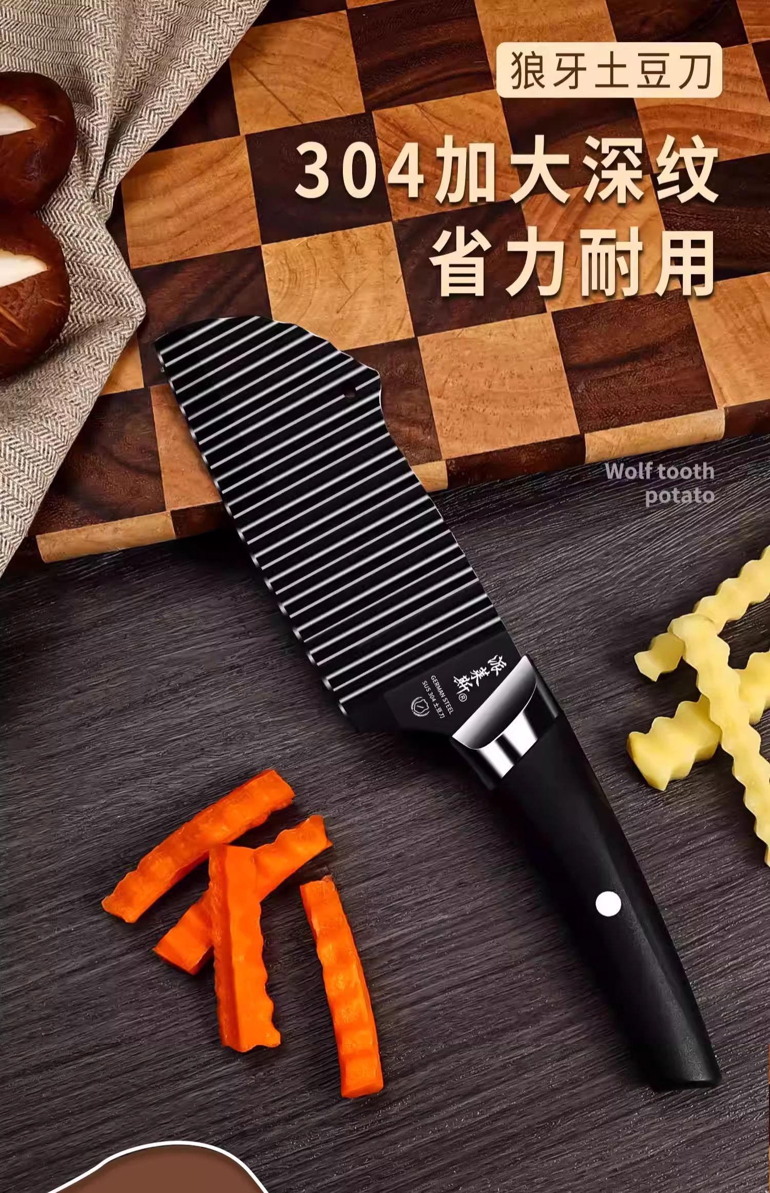 Faca de batata frita de aço inoxidável, cortador de batata com espiga, faca ondulada, ferramenta de descascar, ferramenta de cozinha doméstica, artefato de corte de batata