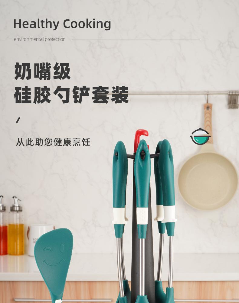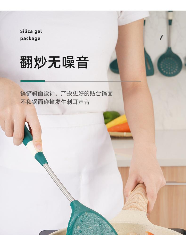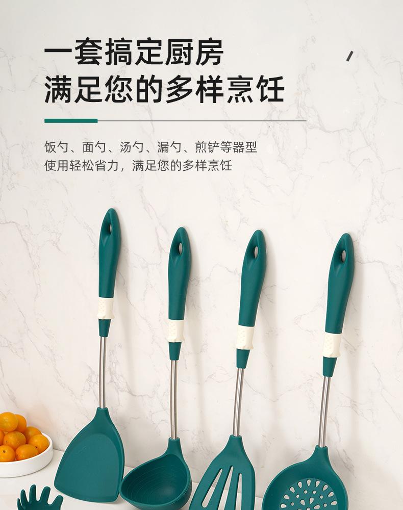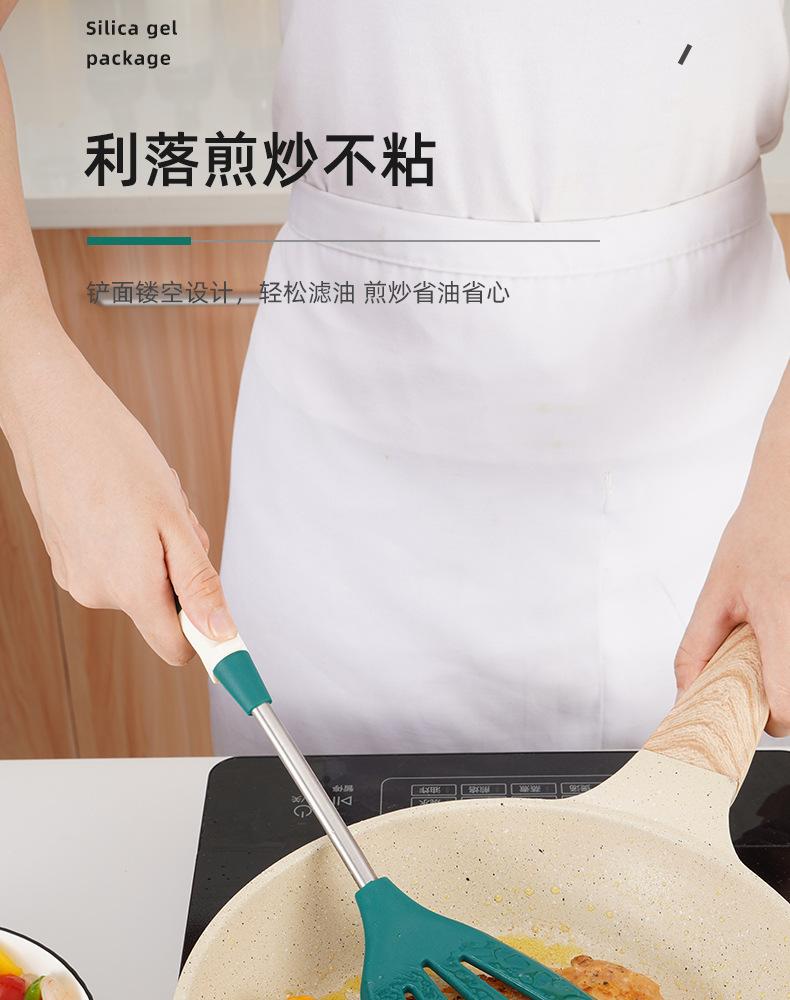 Compre Conjunto de utensílios de cozinha de silicone com 6 peças, conjunto com alça de aço inoxidável, silicone reforçado, conjunto de utensílios de cozinha, panela antiaderente no atacado no Joom.pro