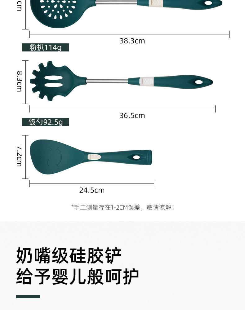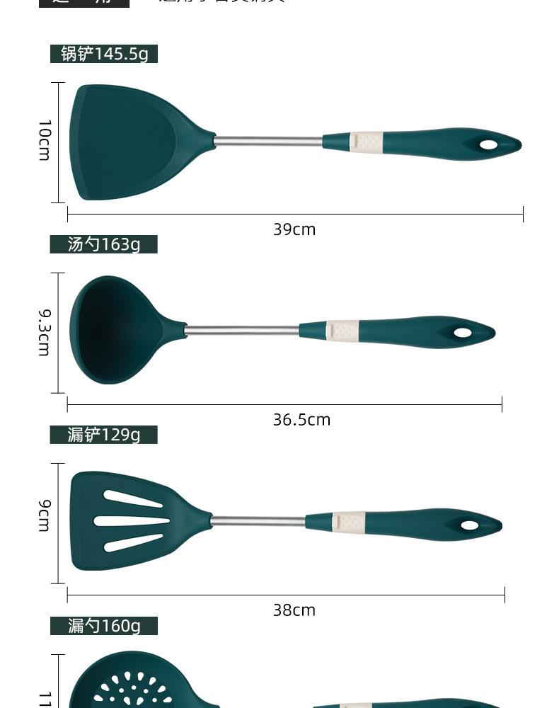 Conjunto de utensílios de cozinha de silicone com 6 peças, conjunto com alça de aço inoxidável, silicone reforçado, conjunto de utensílios de cozinha, panela antiaderente