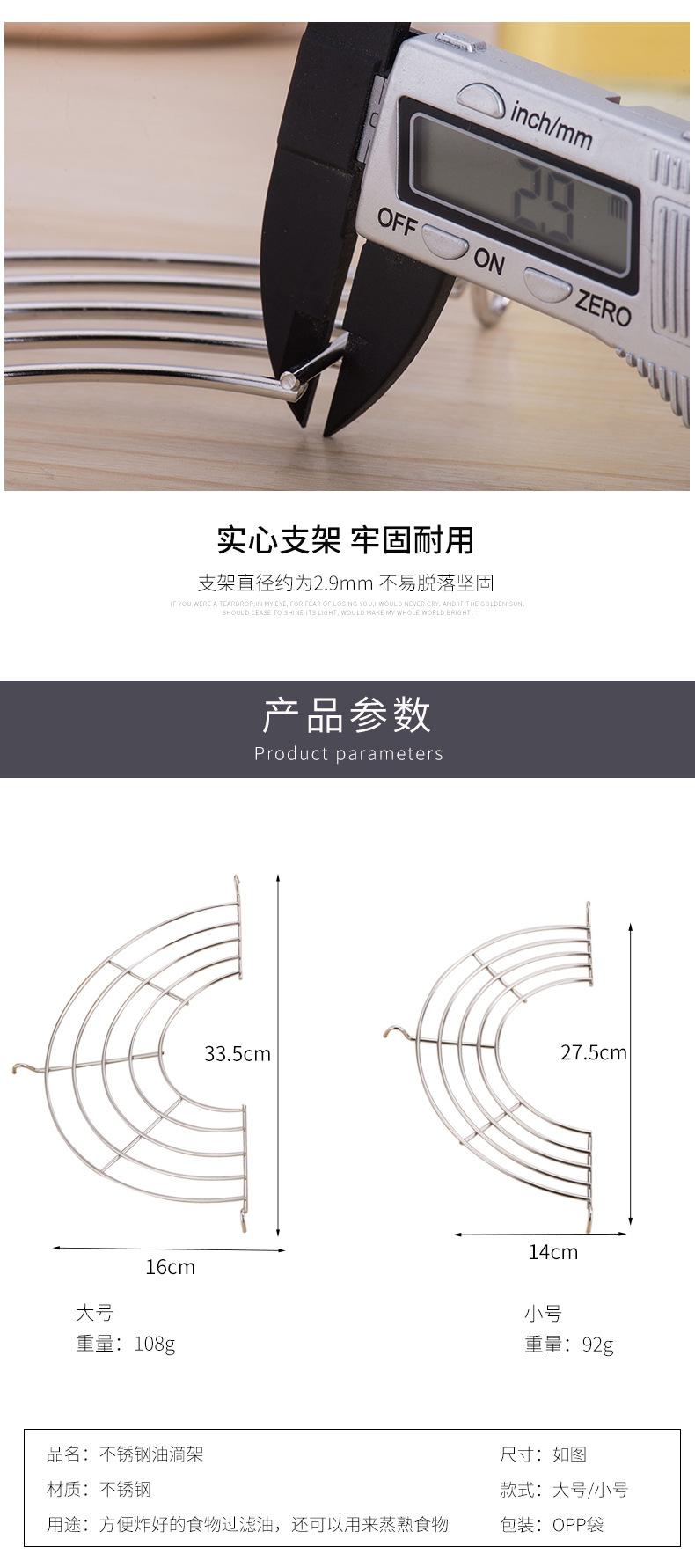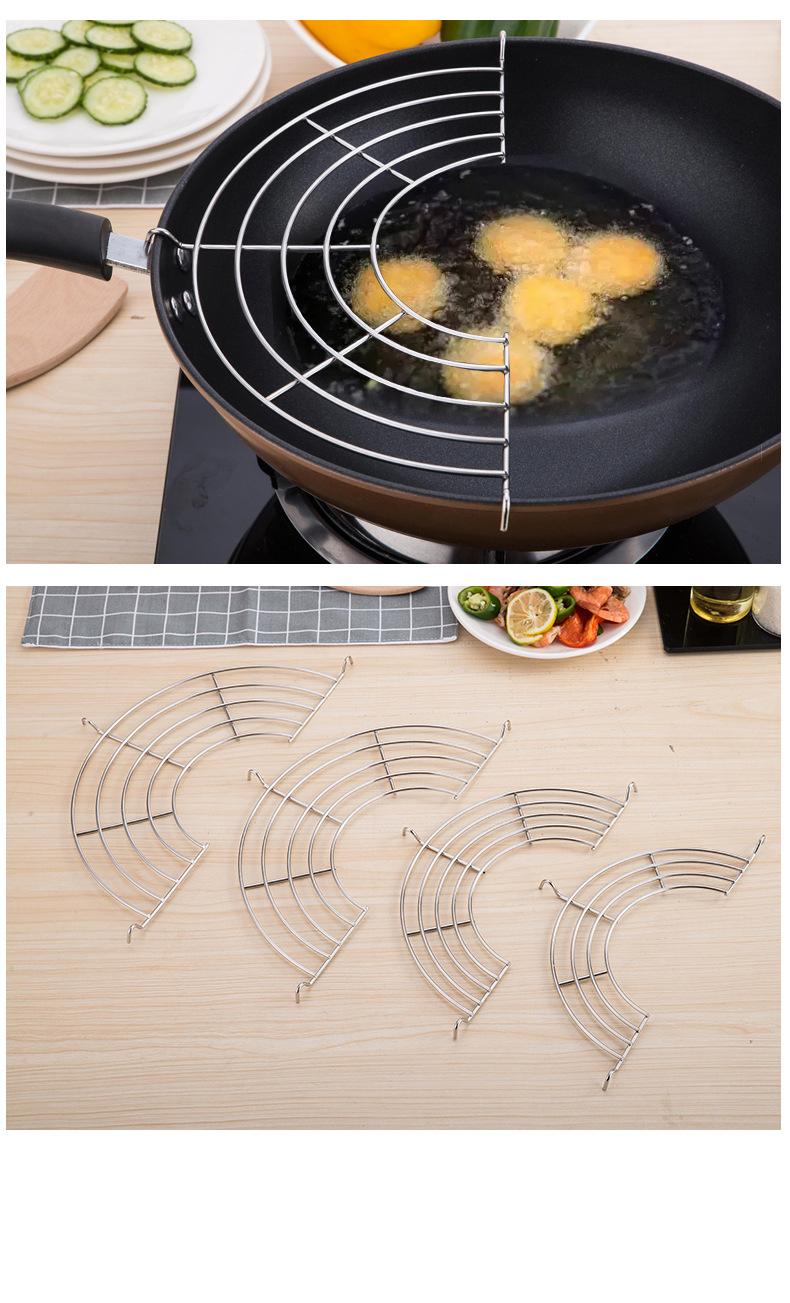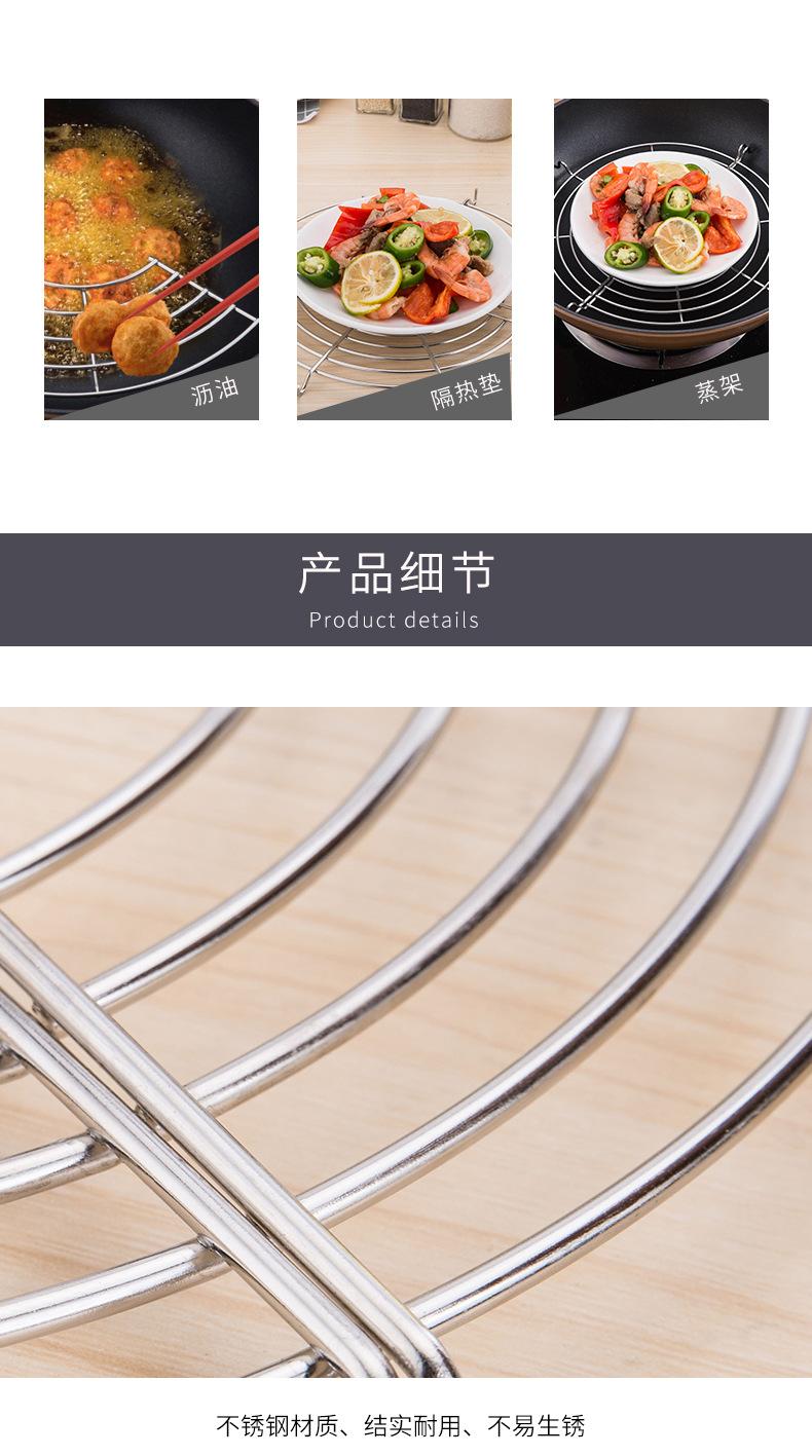 Resumo: Fabricado em aço inoxidável 201, é saudável e seguro. Pode controlar e drenar o óleo ao mesmo tempo. Também pode ser usado como grelha para vapor. Também pode ser usado como rack isolante para colocar potes, tigelas, etc.