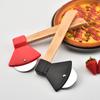 Venda por atacado aço inoxidável rolo pizza corte criativo cabo de madeira machado pizza faca punho redondo cortador de pizza