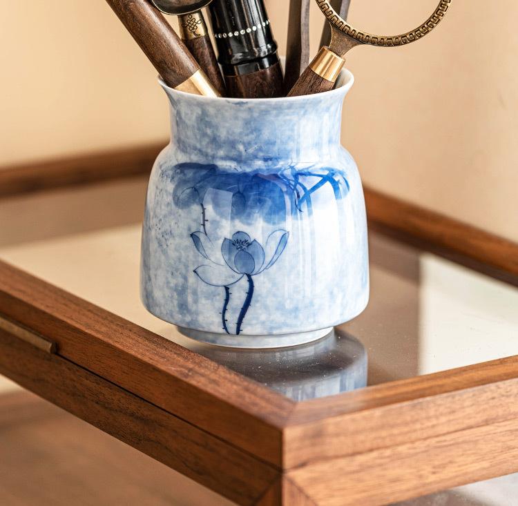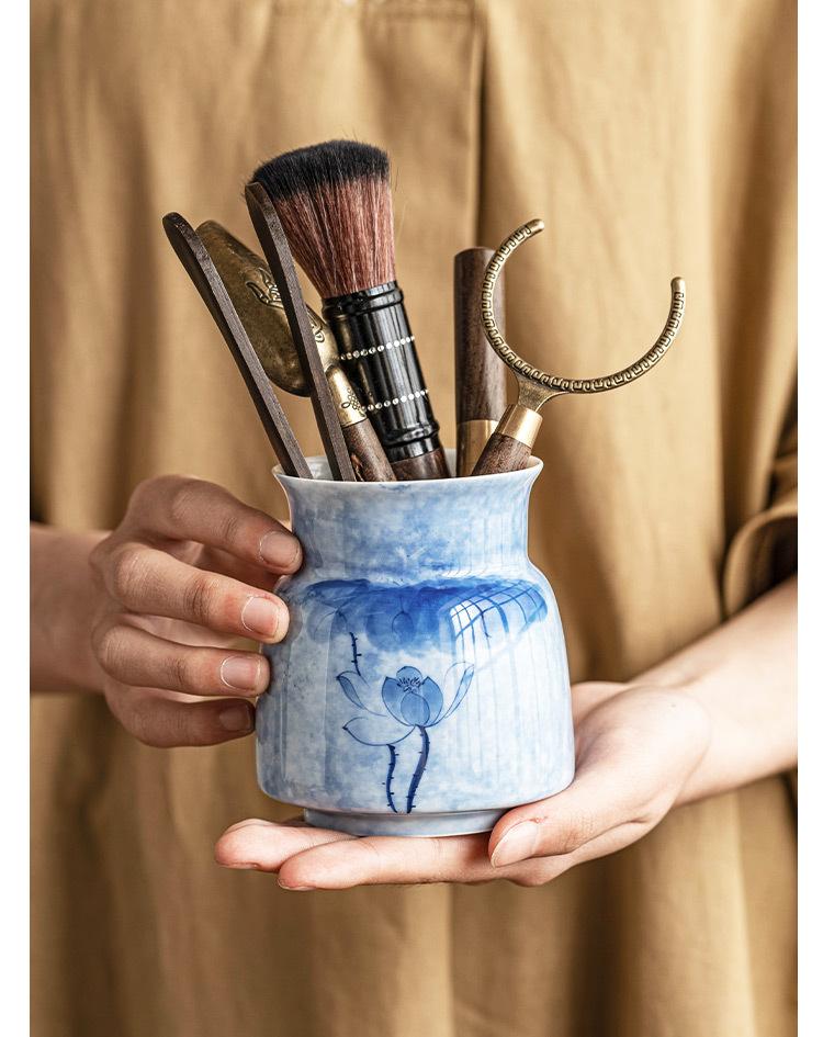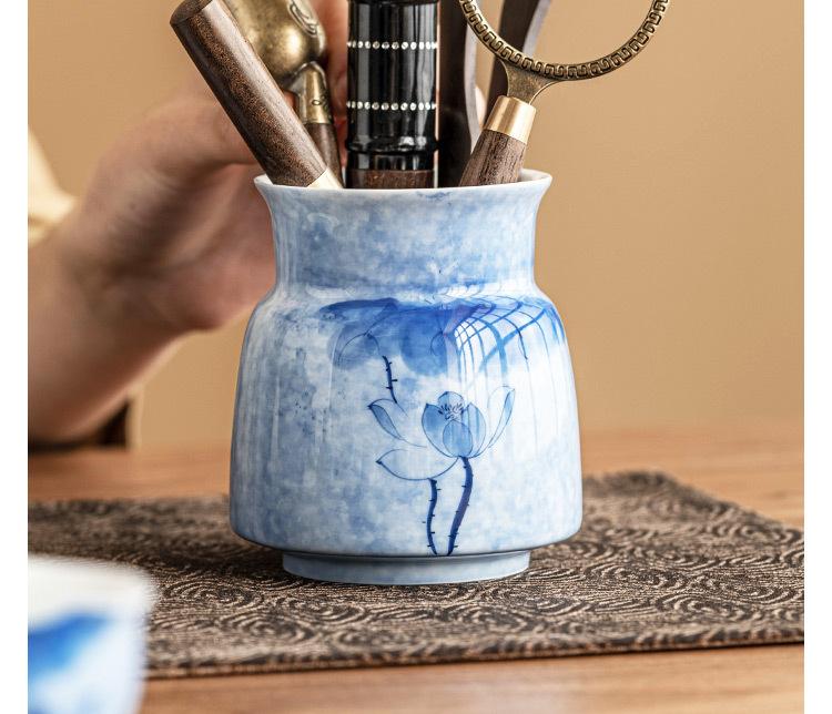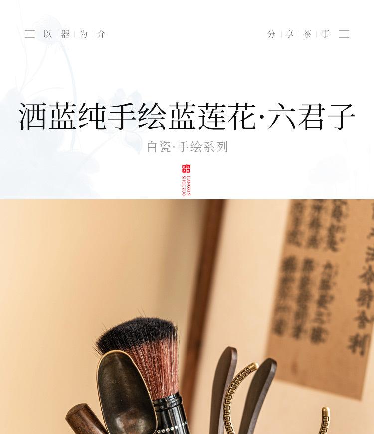 Sprinkle blue pure hand-painted blue lotus_tea ceremony six gentlemen, Sprinkle blue pure hand-painted blue lo...