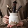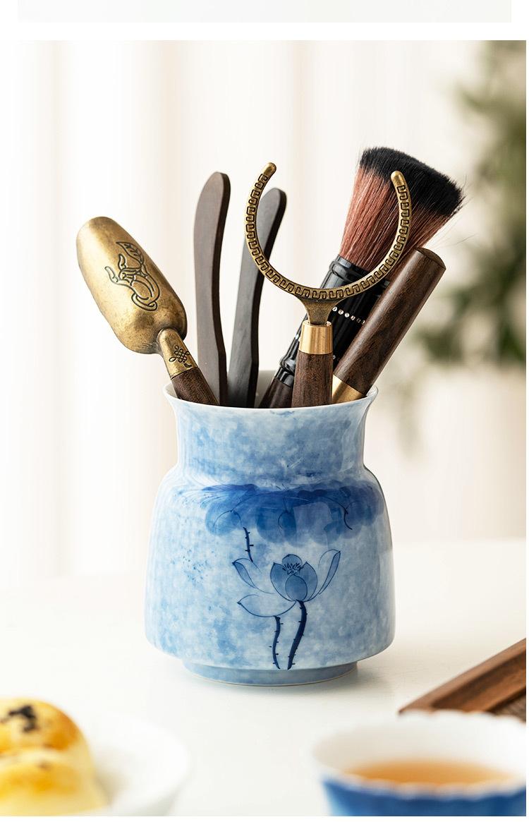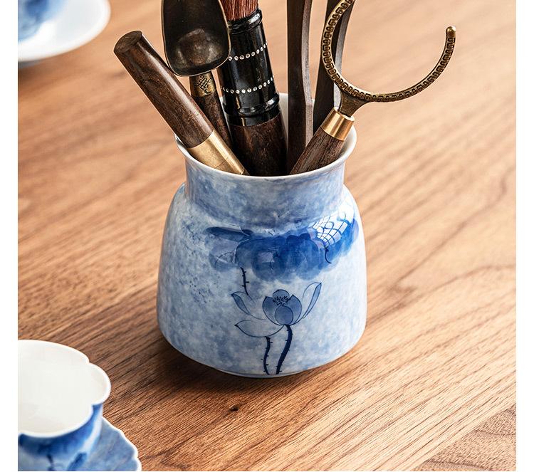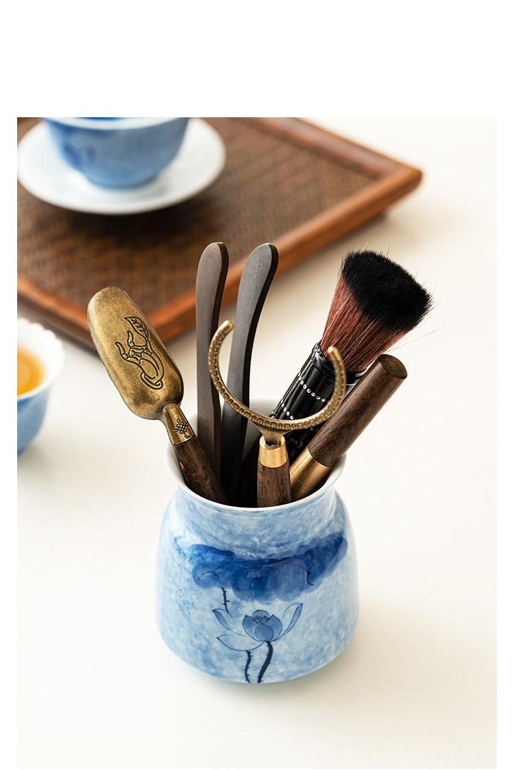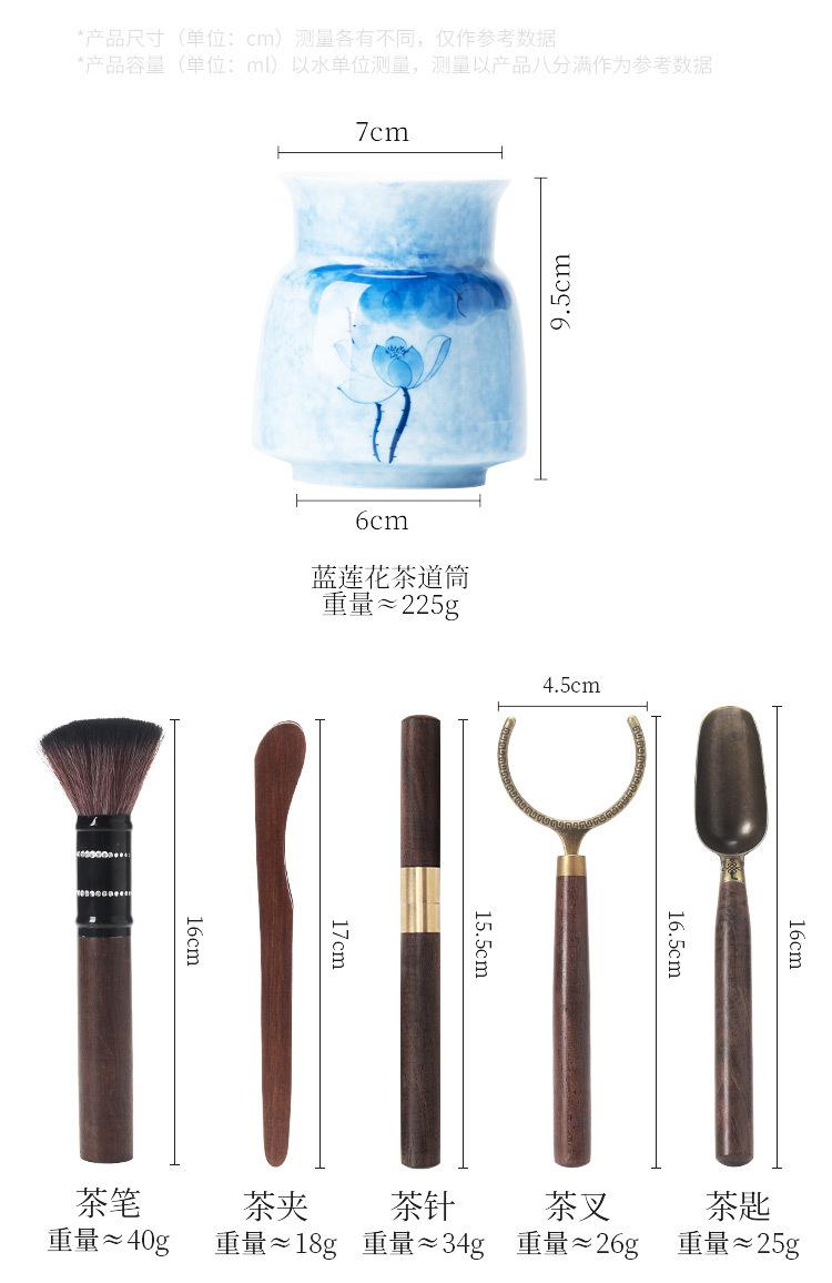 Cerimônia do chá de lótus azul pintada à mão, conjunto de seis cavalheiros, utensílios para fazer chá, clipe de chá, colher de chá, tubo de chá, acessórios para conjunto de chá kung fu