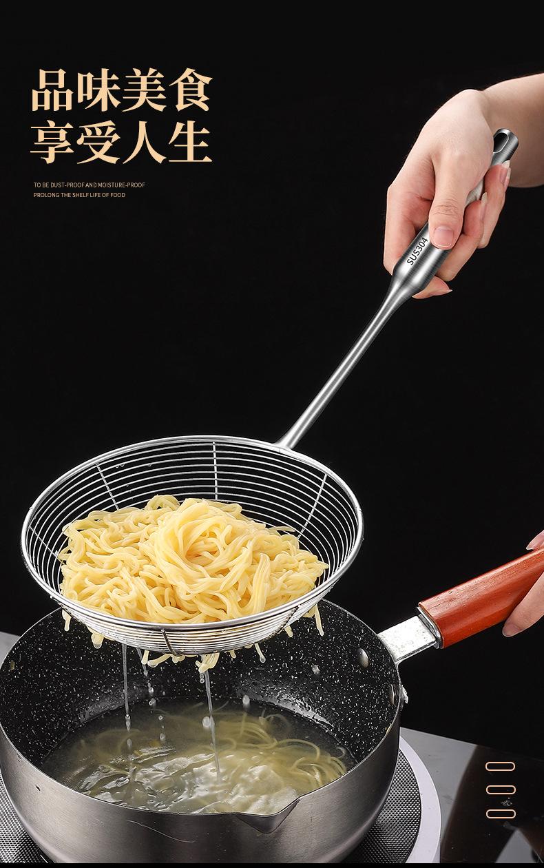 Escorredor para Hot Pot, Escorredor de Linha, Coador de Cozinha para Fritura em Aço Inoxidável 304, Colher para Bolinho/Macarrão com Cabo Longo, Escorredor Todo em Aço