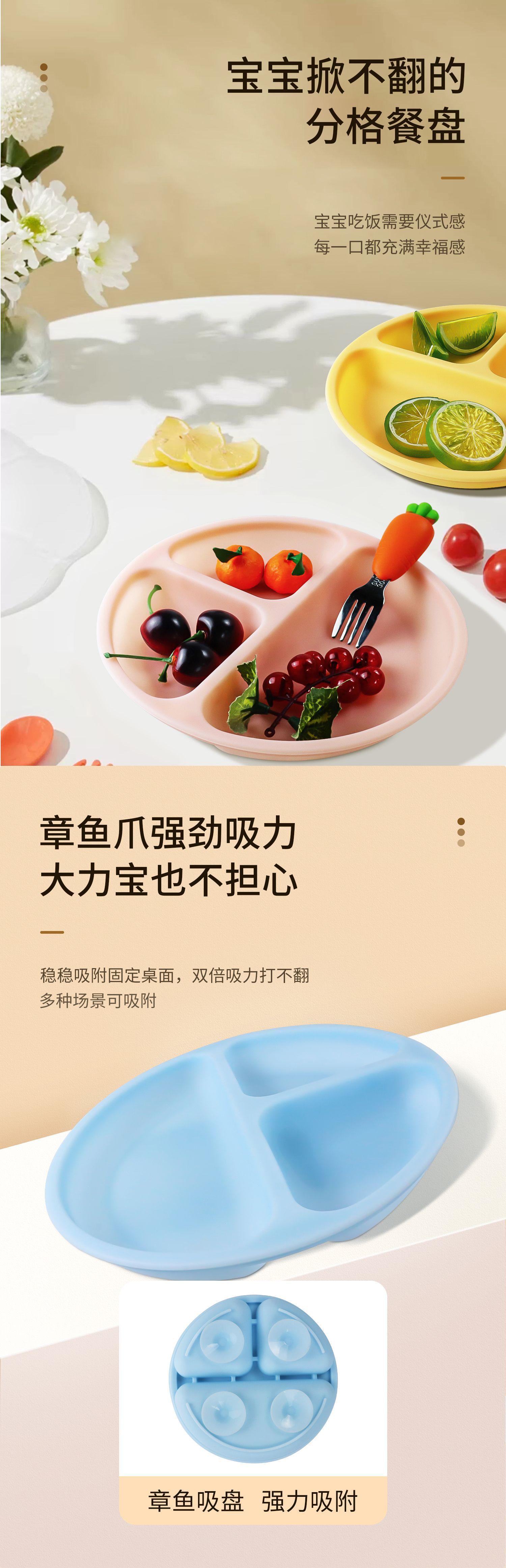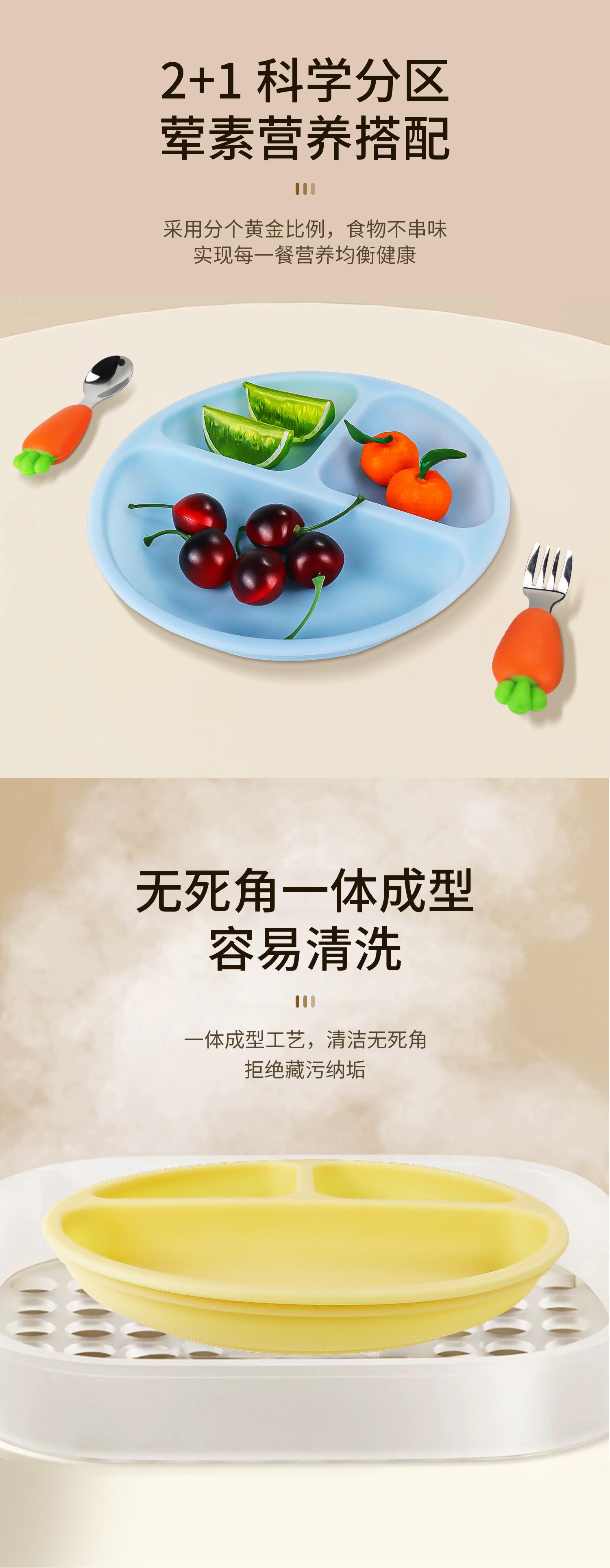 Prato de Jantar de Silicone para Bebê da Amazon, Tigela para Comida de Bebê, Ventosa Integrada, Talheres Infantis, Anti-Queda, Silicone de Grau Alimentício