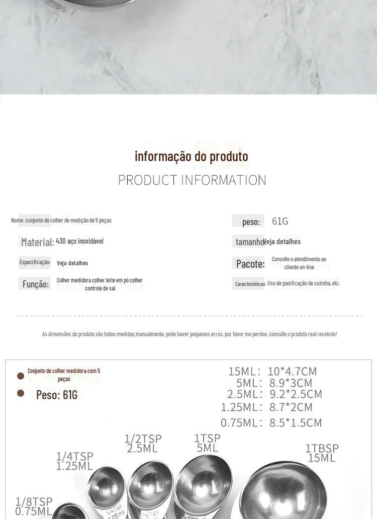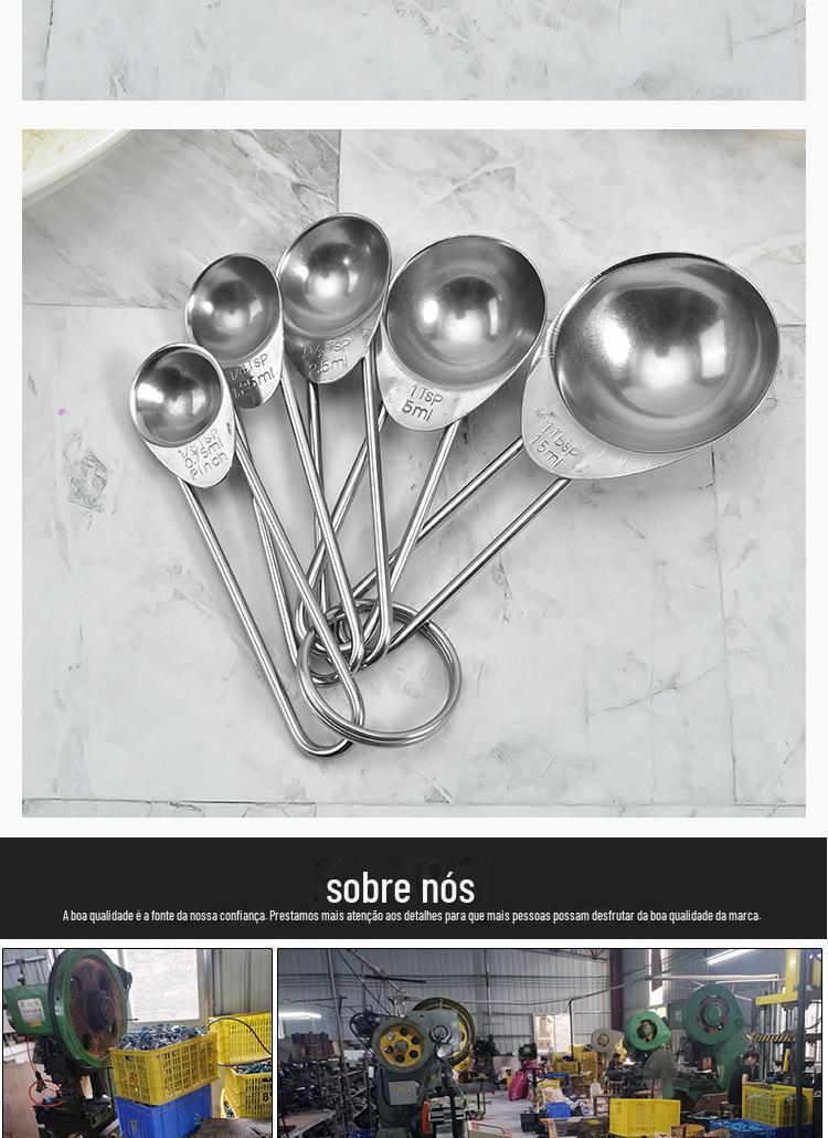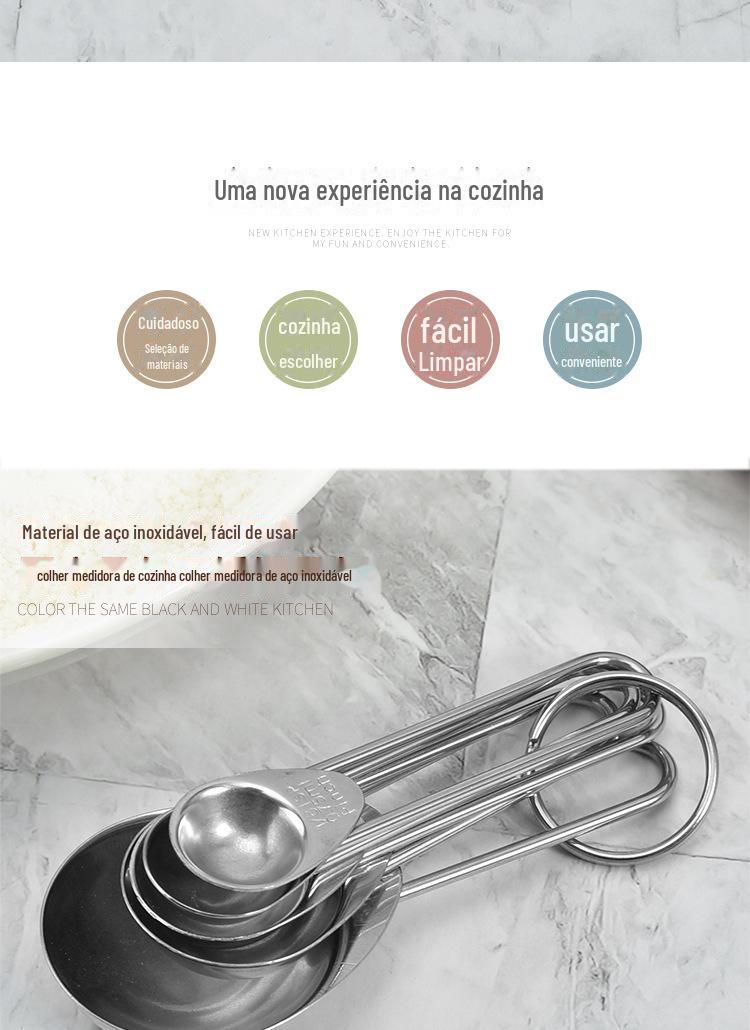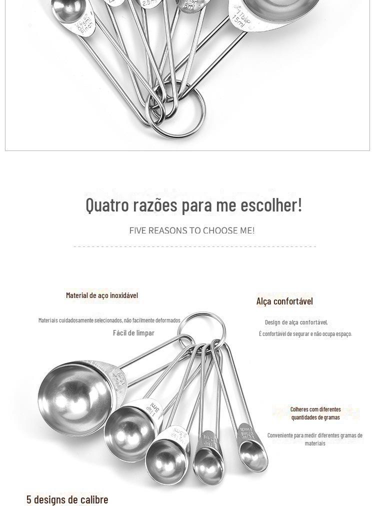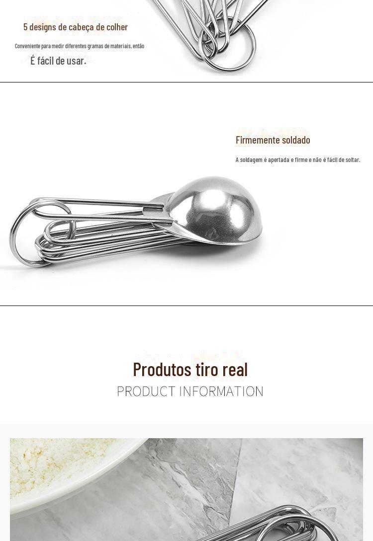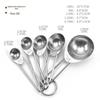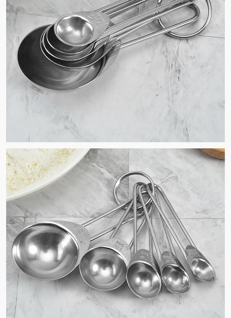 Venda por atacado cozinha doméstica aço inoxidável colher de medição cinco peças conjunto de leite em pó colher colher de café com ferramentas de cozimento escala