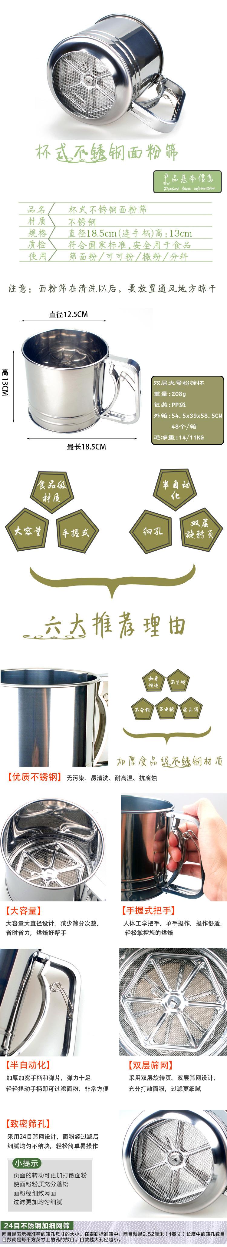 【Nome】 Peneira de farinha puxada manualmente em aço inoxidável [Peso] Tamanho pequeno 115g Tamanho médio 173g Tamanho grande 214g