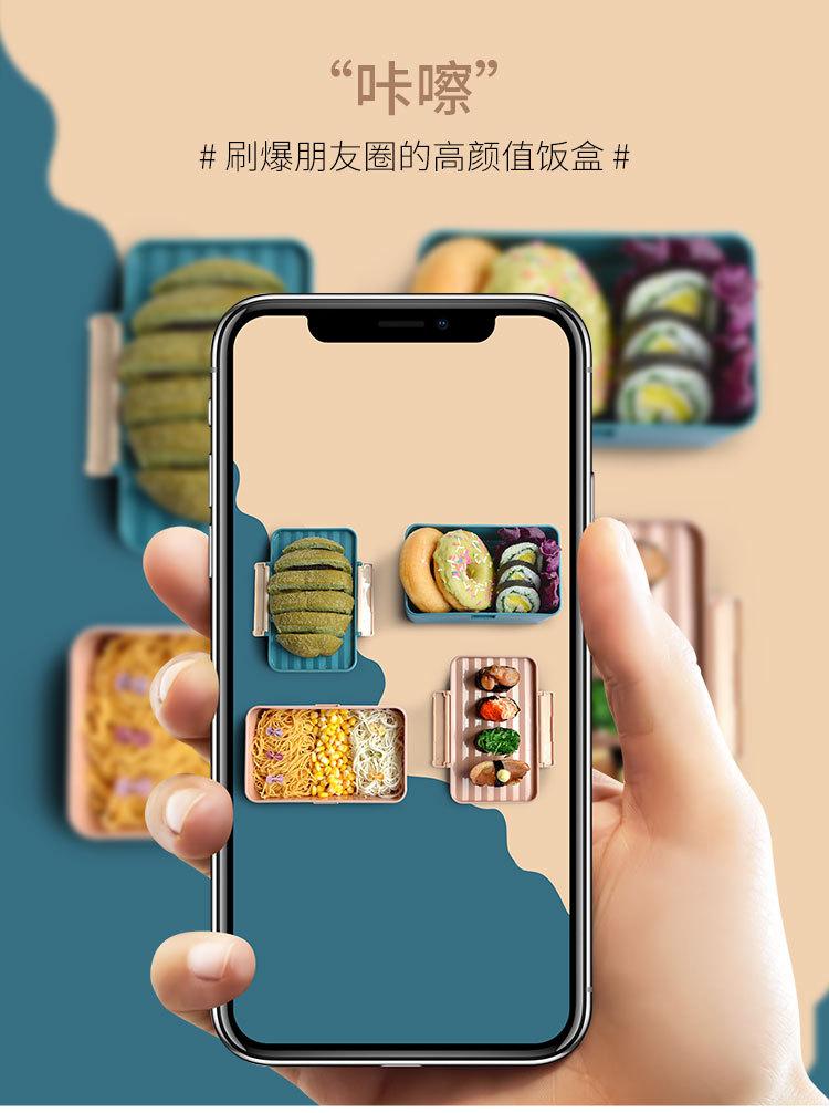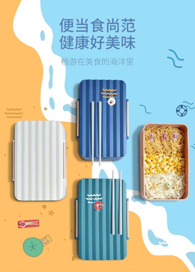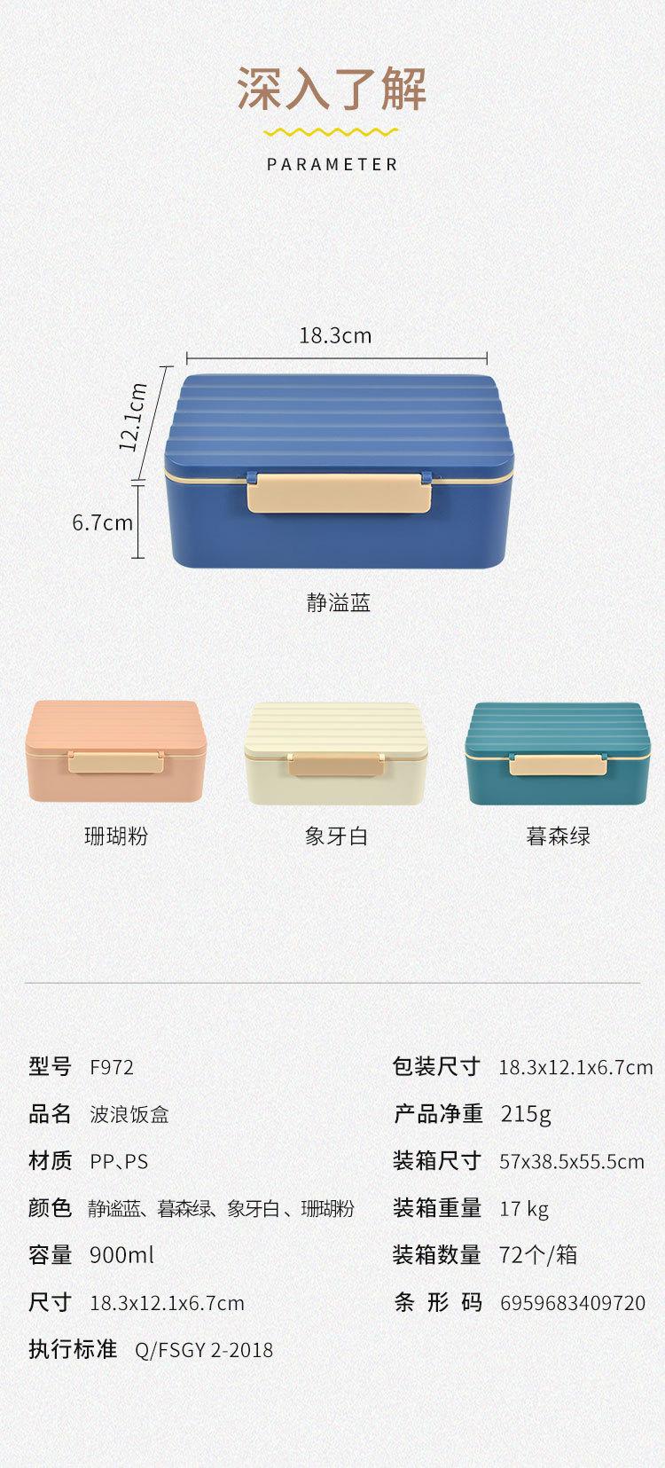 Atacado do Fabricante Lancheira de Plástico Onda Estilo Simples Criativa Lancheira Estudantil Portátil para Piquenique Micro-ondas