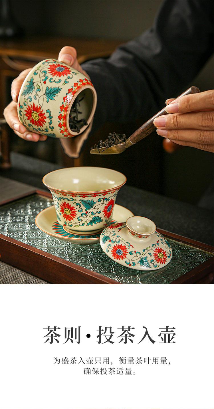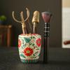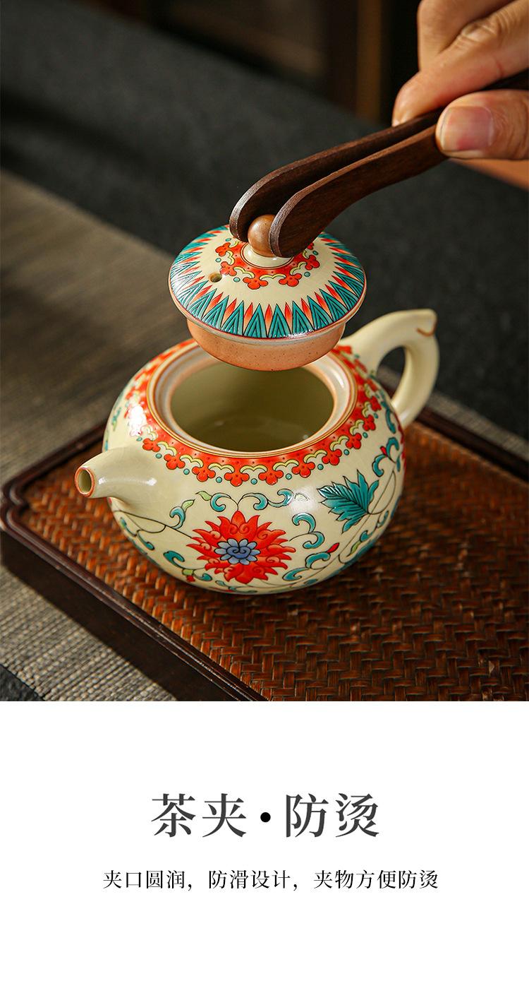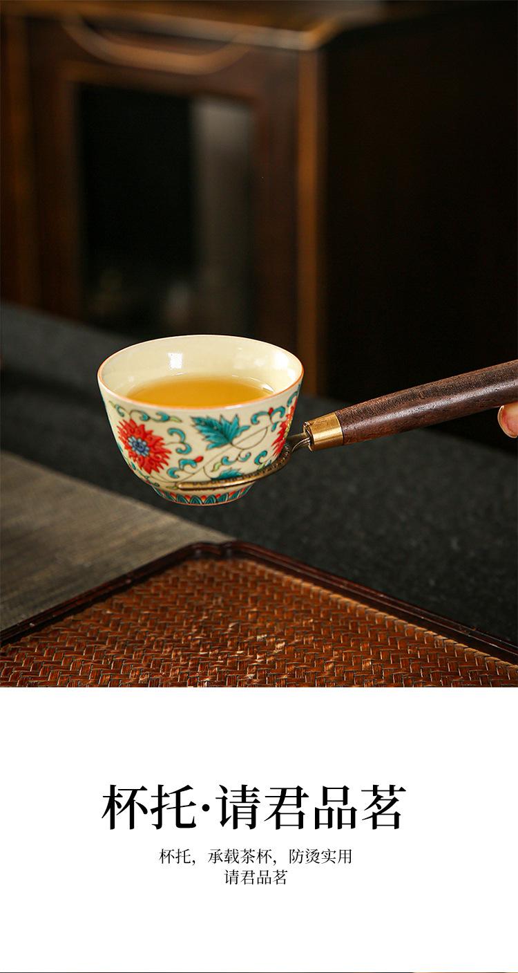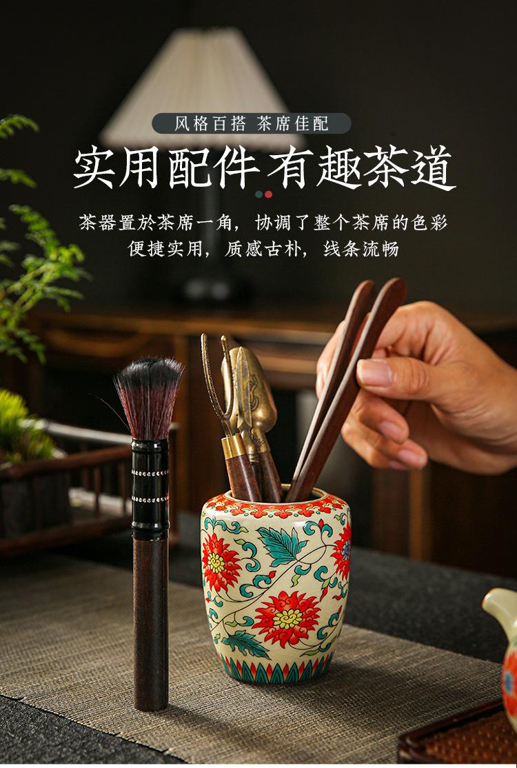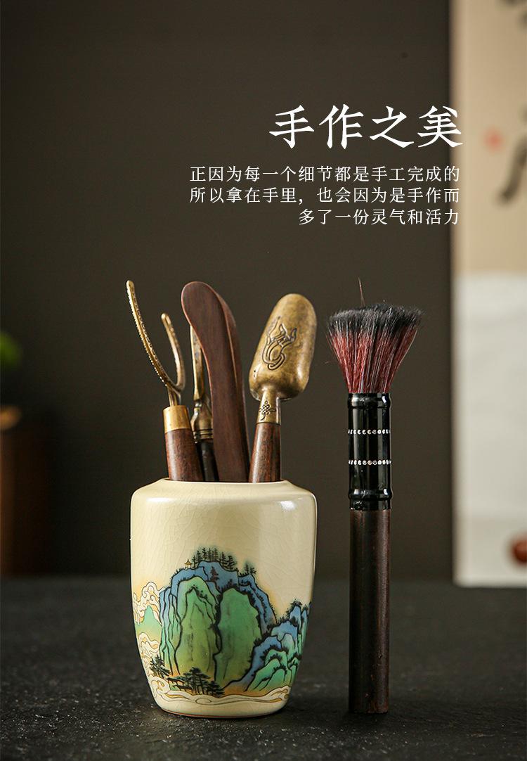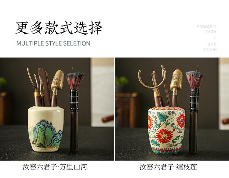 Peça aberta bege Ru Kiln Cerâmica seis cavalheiros acessórios de ébano cerimônia do chá zero combinando kung fu chá conjunto enfeites de arte do chá