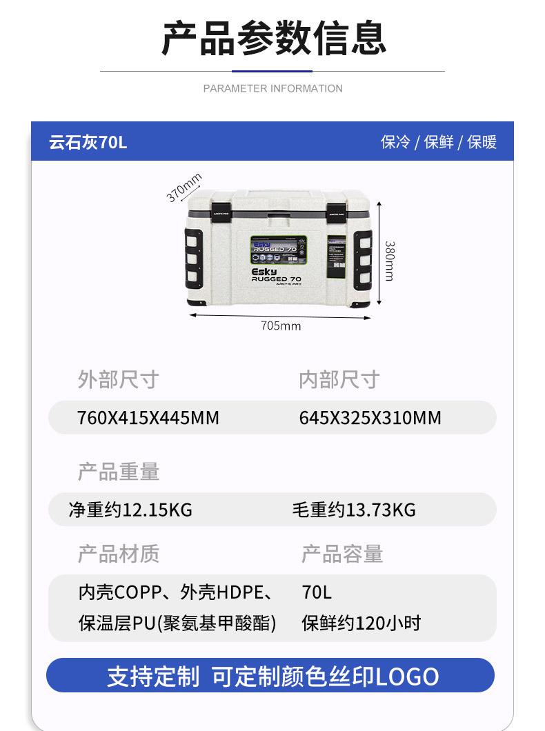 Caixa Isotérmica Cooler Cubo de Gelo Cinza Mármore 70L Viagem Carro Balde de Gelo Pesca Grande Portátil Caixa Balde de Gelo Atacado
