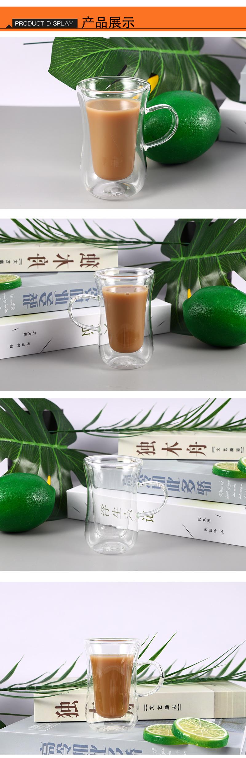 Xícara de café com alça de vidro resistente ao calor de camada dupla criativa isolamento térmico copo de água bebida fria copo de suco copo arco copo