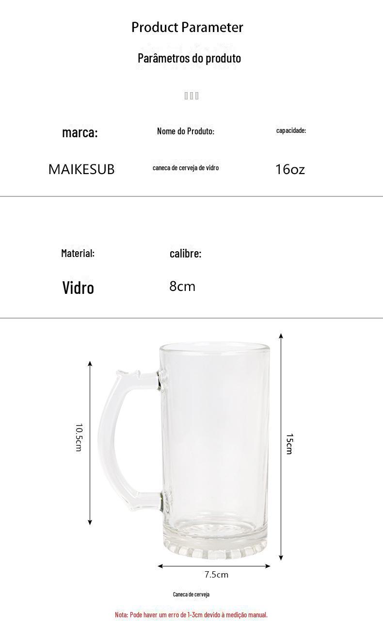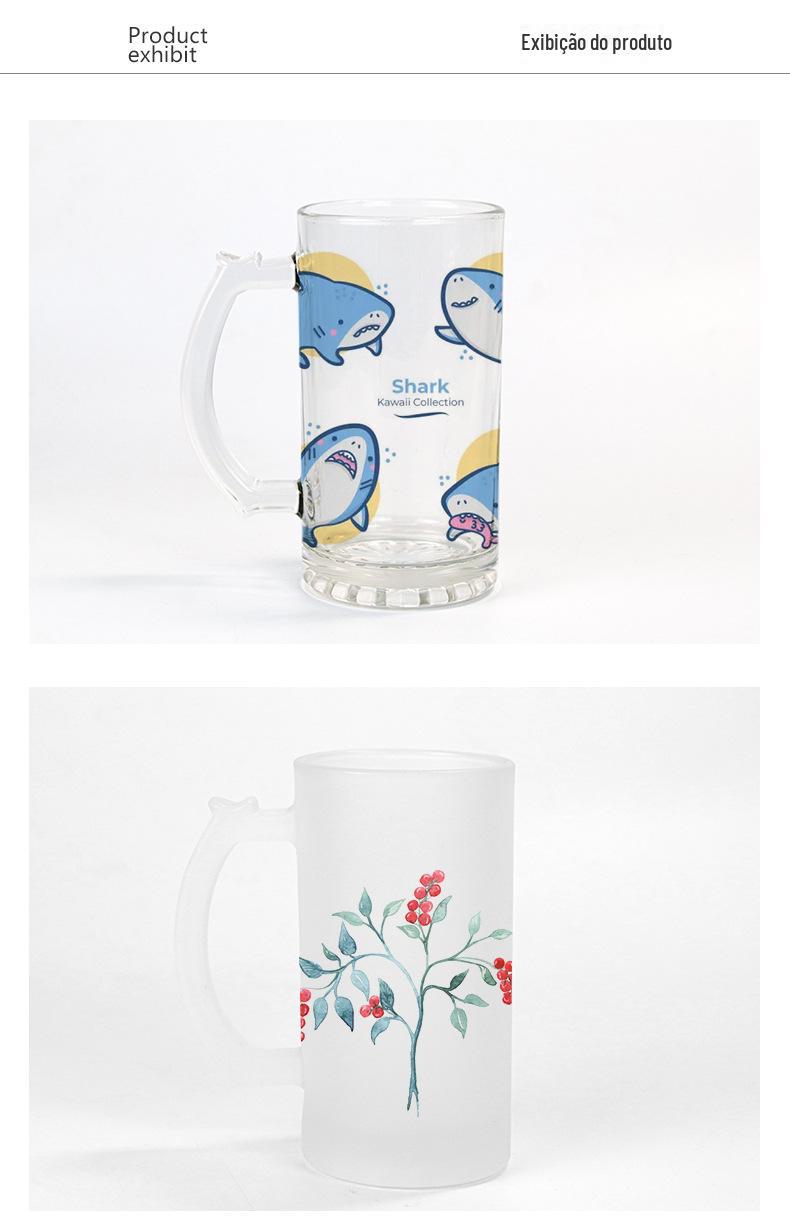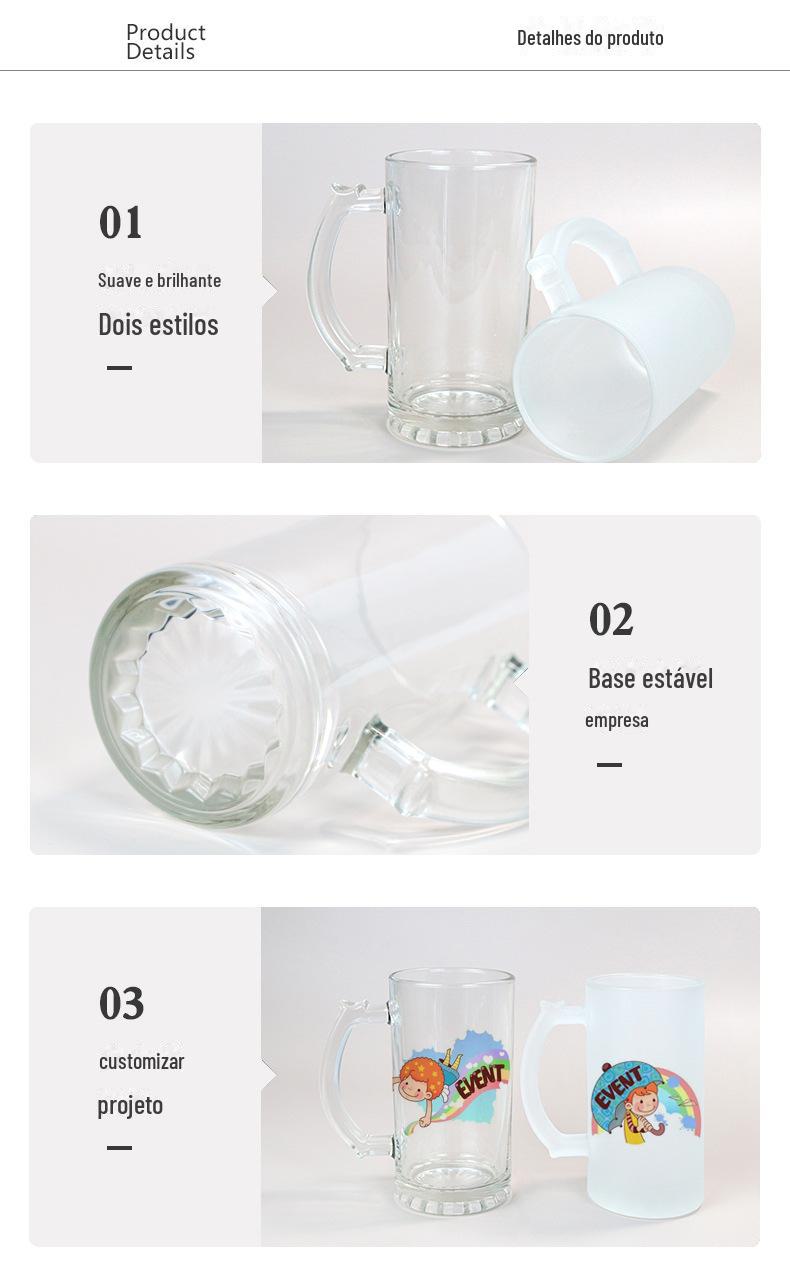 Nome:Vidro de transferência térmica 16oz vidro fosco caneca de cerveja transparente caneca de cerveja